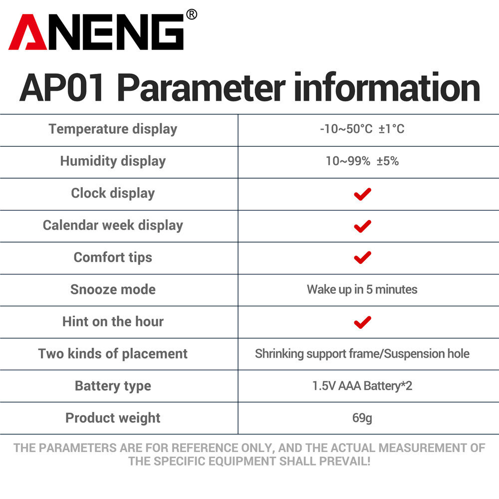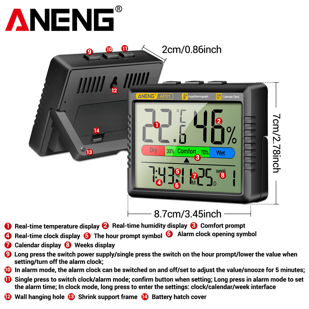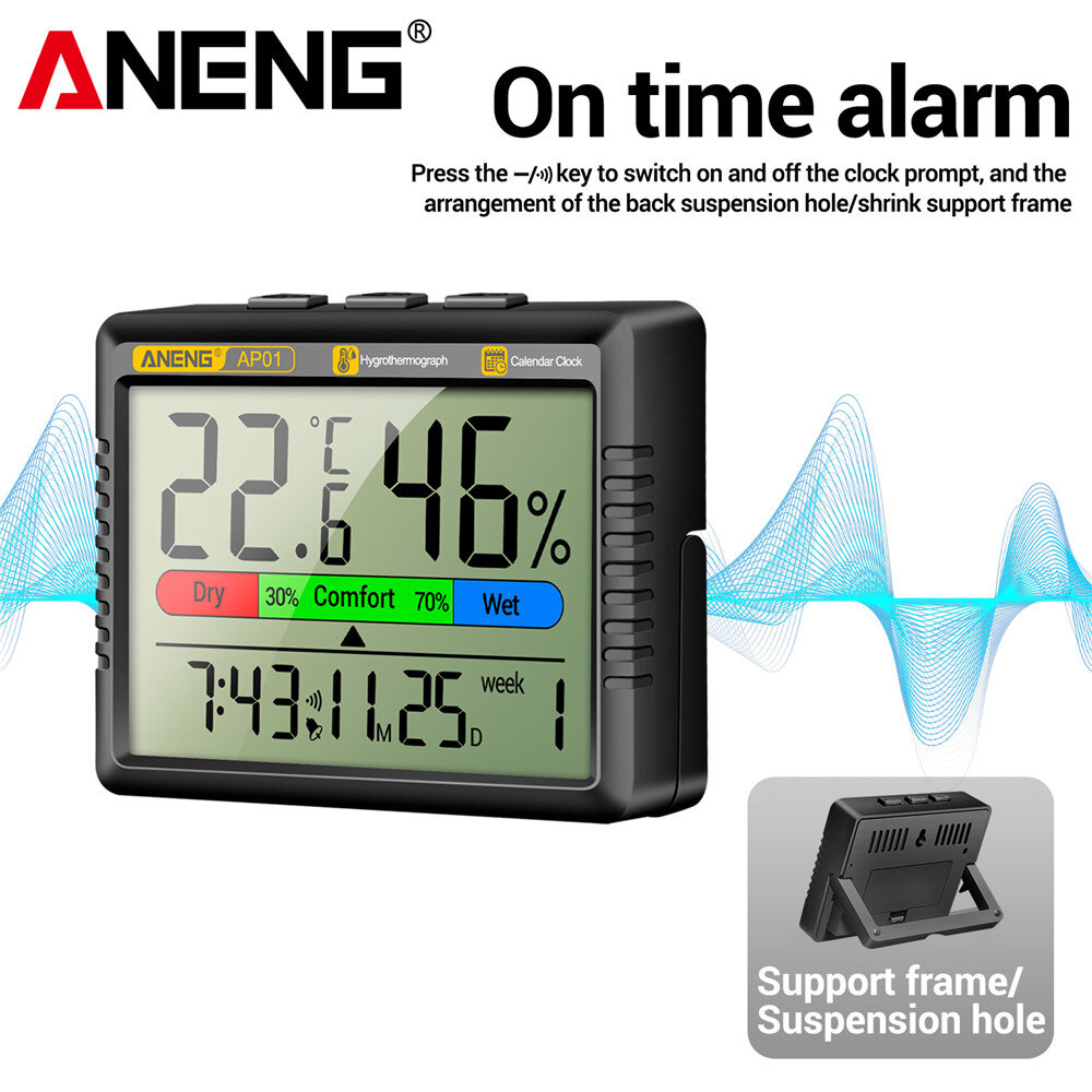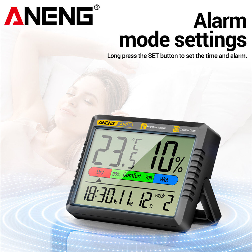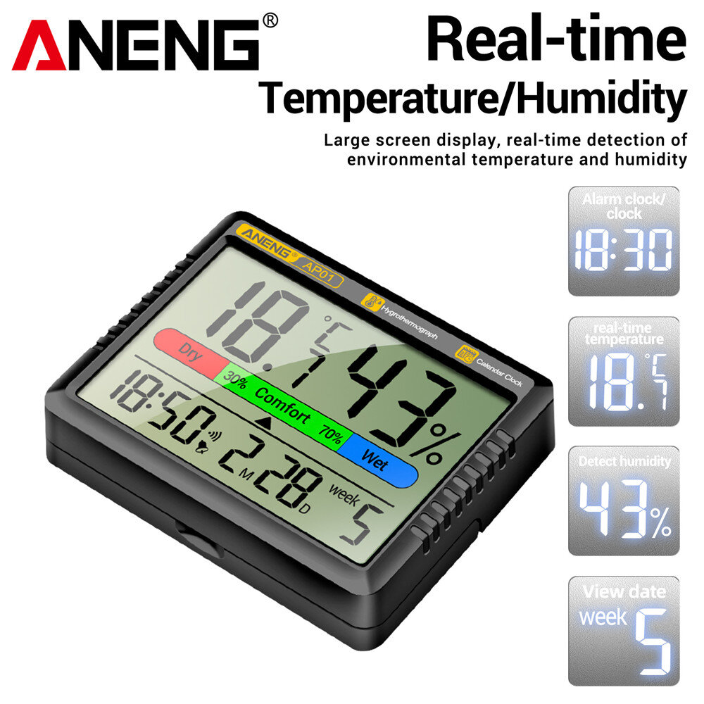 1 x ANENG AP01 Thermohygrometer Clock