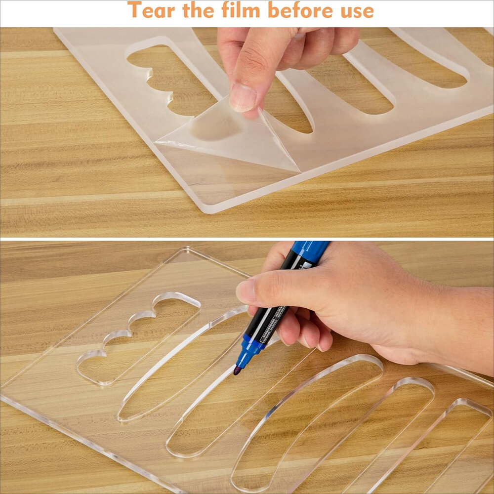 The template has polished edges, minimizing friction and ensuring safety when handling or tracing with tools.