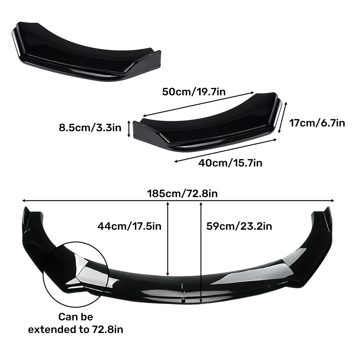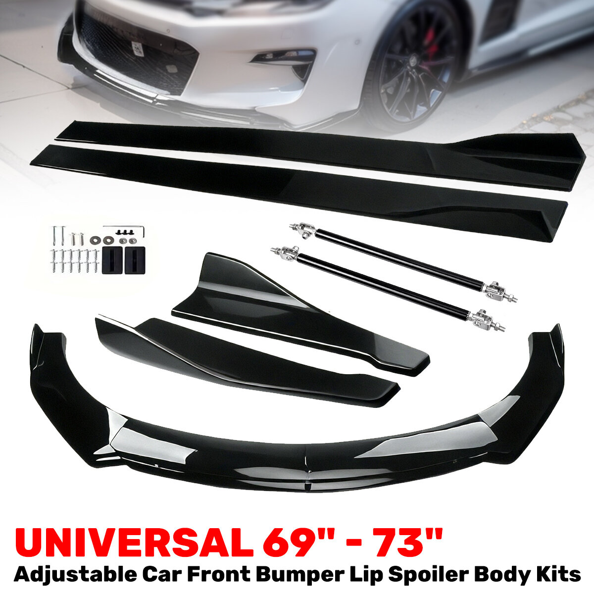 69\ - 73\ Adjustable Car Front Bumper Lip Spoiler Body Kits Universal + 86.6\/ 2M Car Side Skirt Extension Rocker Panel Body Kit + 18.89\ Auto Rear Lip + Adjustable 8-11\ Splitter Rods