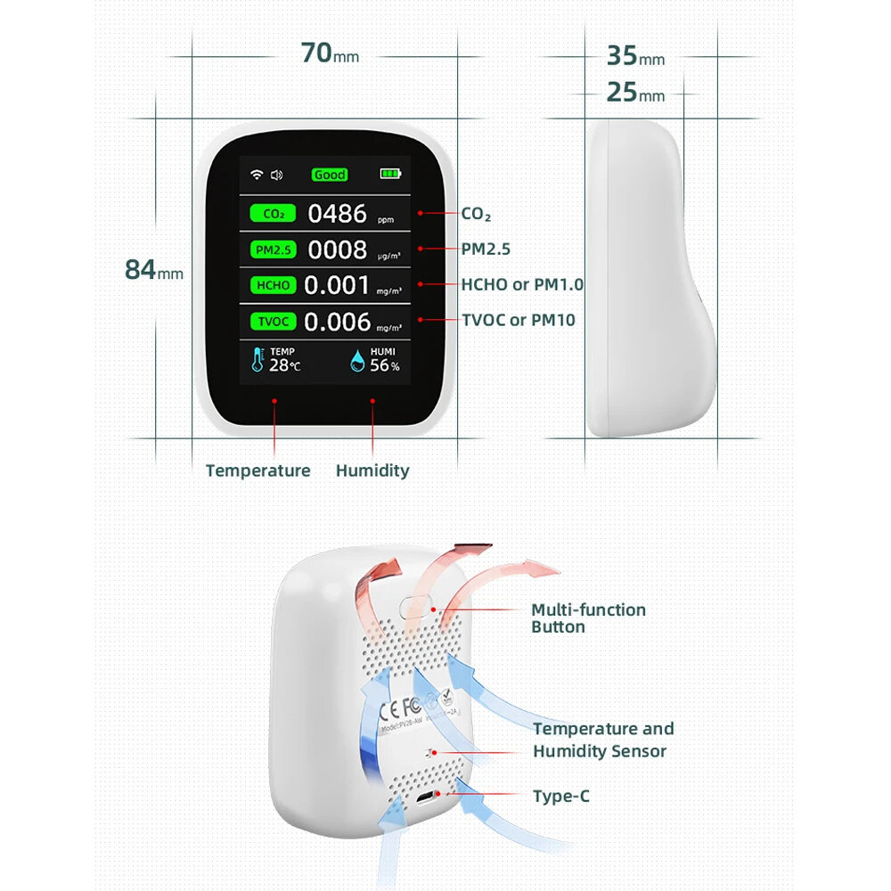 u3010High Accurate Sensorsu3011: Uses high-precise NDIR infrared carbon dioxide sensor, laser particle sensor, semiconductor sensor, optical sensor and distance sensor, with high sensitivity, superior interference resistance ability, stable working performance, with low power consumption.