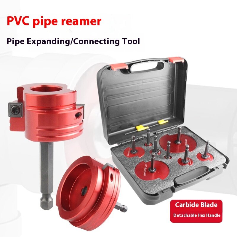 Product Name: 8-Piece PVC Water Line Reamer Set Material: High-quality hard alloy blade and aluminum alloy body Drain Line Sizes: Compatible with SCH-40 PVC Water Line sizes: 1/2", 3/4", 1", 1-1/4", 1-1/2", 2", 3", 4" Package Dimensions: 26.5 x 23 x 10 cm Package Weight: 2030 g Blade Type: Square tungsten carbide inserts Usage: Removes water line burrs, cleans obstructions, repairs internal sewer line fittings