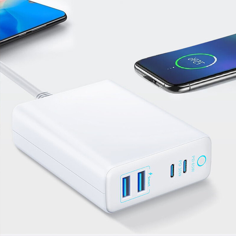 4. Multi-Port Design: Features two USB-C and two USB-A ports, enabling simultaneous charging of up to four devices, perfect for families or shared workspaces.
