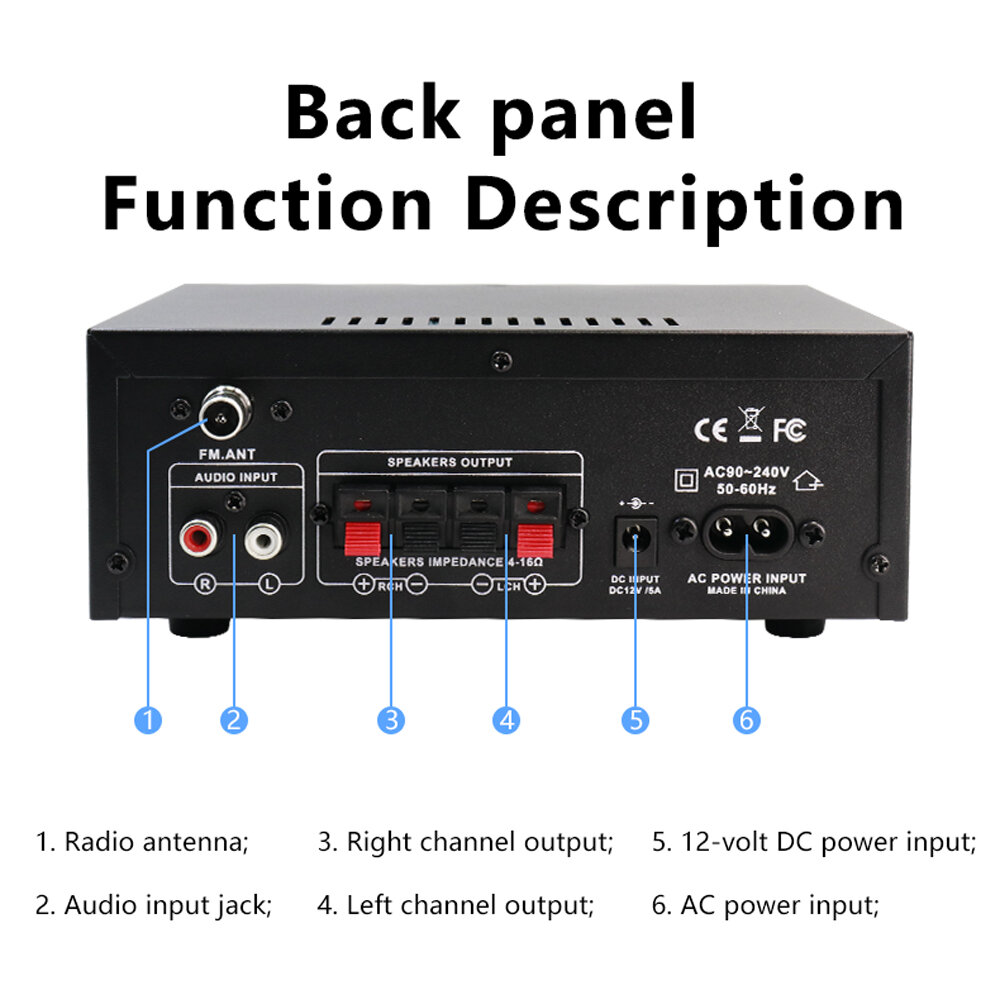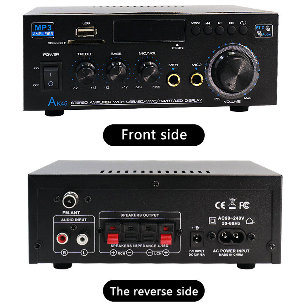 Key Features: bluetooth connectivity, FM radio function, LED function display, volume and tone adjustment knobs