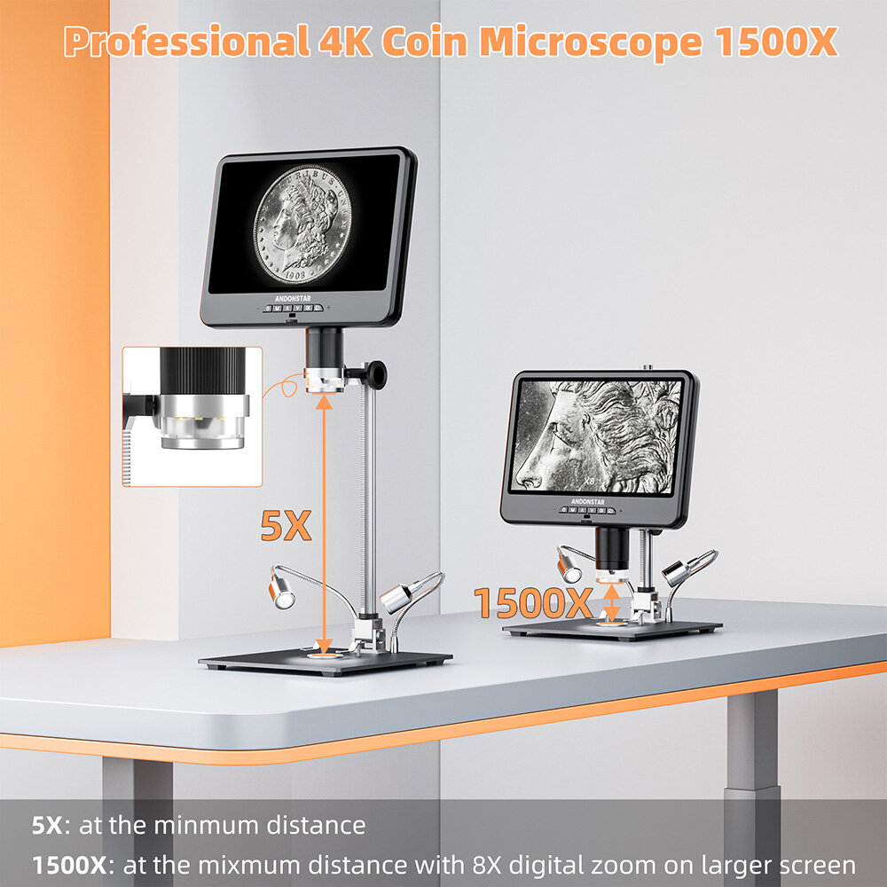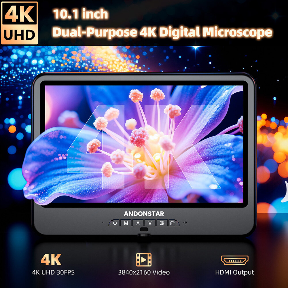 ANDONSTAR AD208SE 4K UHD HDM Digital Microscope 5x-1500X Magnification 10.1 Inch 3840PX2160P IPS Screen Support for Electronics Repair Coin Inspection High Definition Media Interface