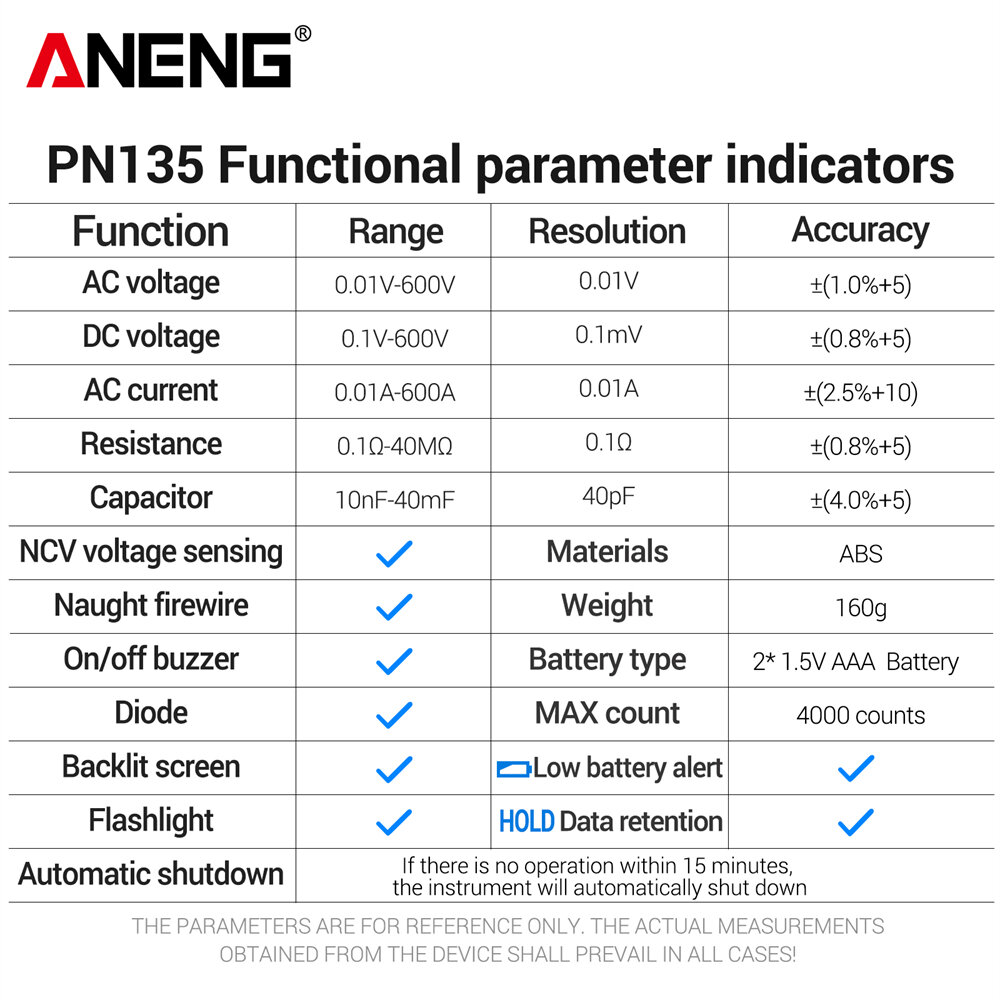 Capable of measuring AC/DC voltage, AC current, resistance, and capacitance with high precision, making it suitable for both professional and household purposes.