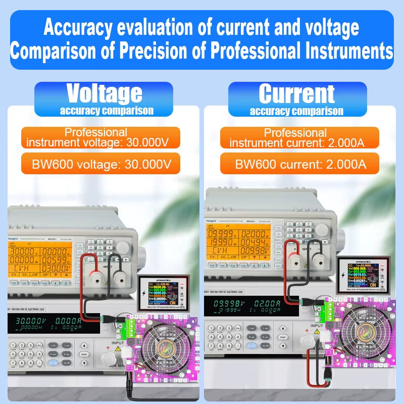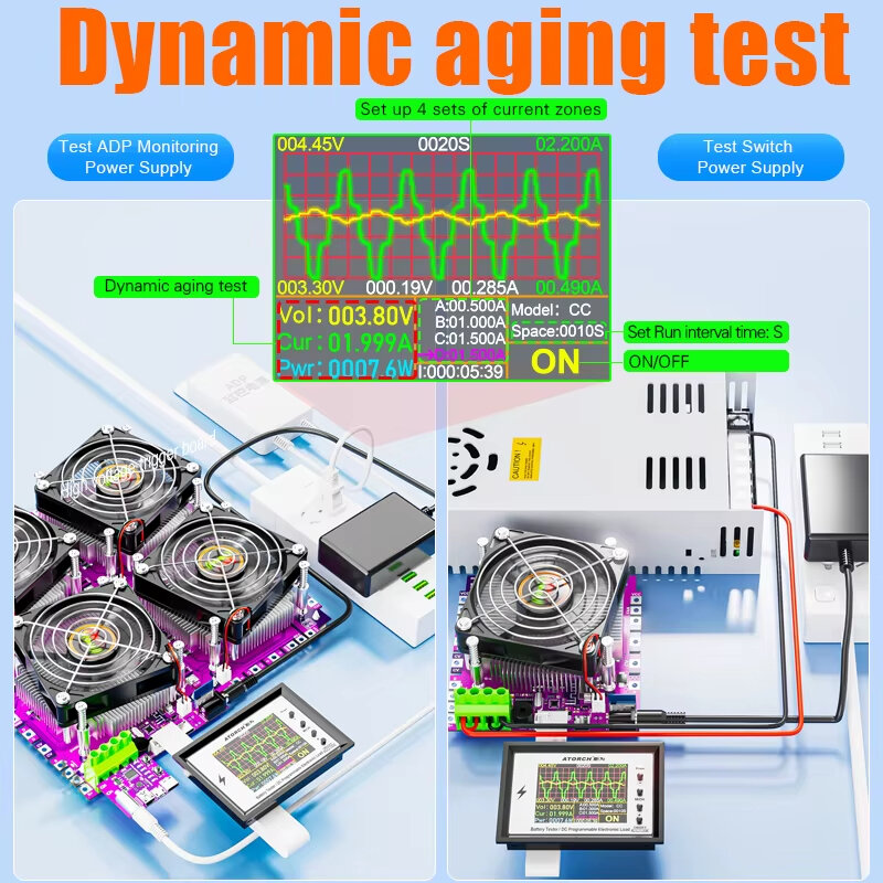 3.Advanced Color Screen Display: Provides a clear and detailed visual of voltage, current, power, and temperature curves for precise performance tracking during tests.