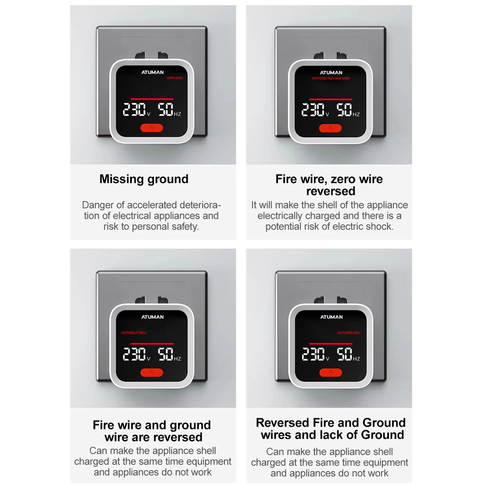 1. Advanced Wiring Status Display: Includes a large LCD backlit display that clearly presents six wiring conditions, enabling swift identification of correct or problematic setups and ensuring efficient diagnostics.