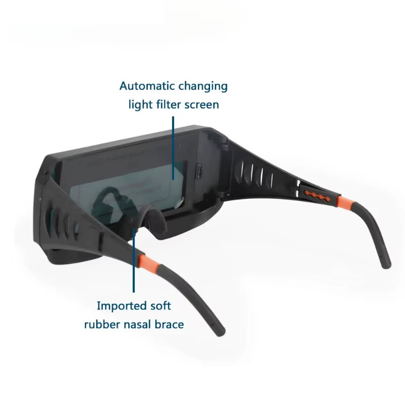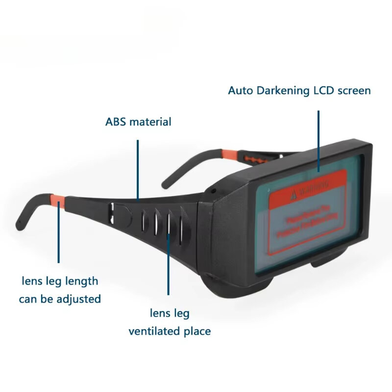 1.The high-sensitivity probe has high working efficiency, and the experiment proves that this conversion speed will not cause any harm to the eyes. 2.The automatic dimming screen, when the arc is generated, the dimming screen is darkened by the normal moment, and when the arc disappears, the dimming screen returns to the normal state. 3.According to the needs of different people, we can adjust the length of the legs of glasses. 4.Anti-ultraviolet, infrared radiation, anti-glare, do not stick slag. 5.Ear wear, head wear can switch to each other. 6.Lens are anti-shock, strong abrasion resistance, impact resistance,reliable in use, great for welding. 7.This solar auto darkening welding goggle is made of high quality PC material, sturdy and reliable to use.