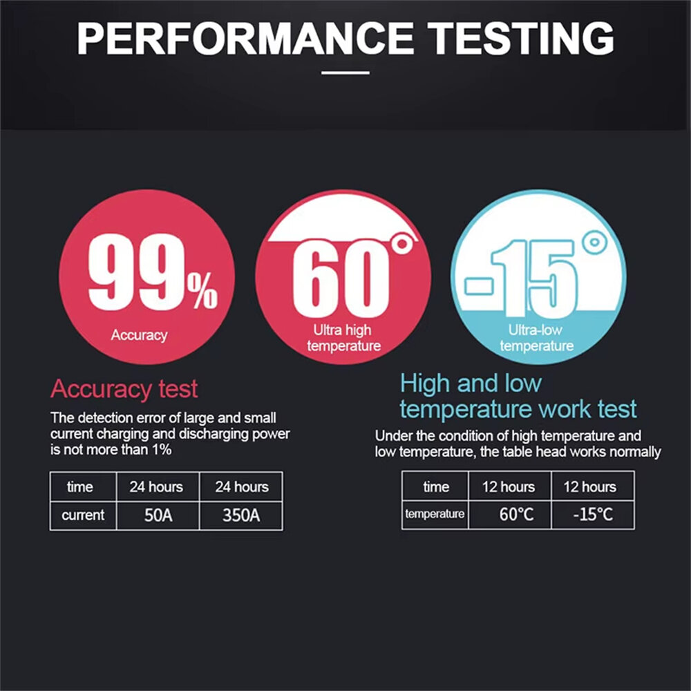 Supports battery capacities up to 999.9Ah with a testing error of ≤1%, providing precise and reliable readings on charge/discharge metrics.
