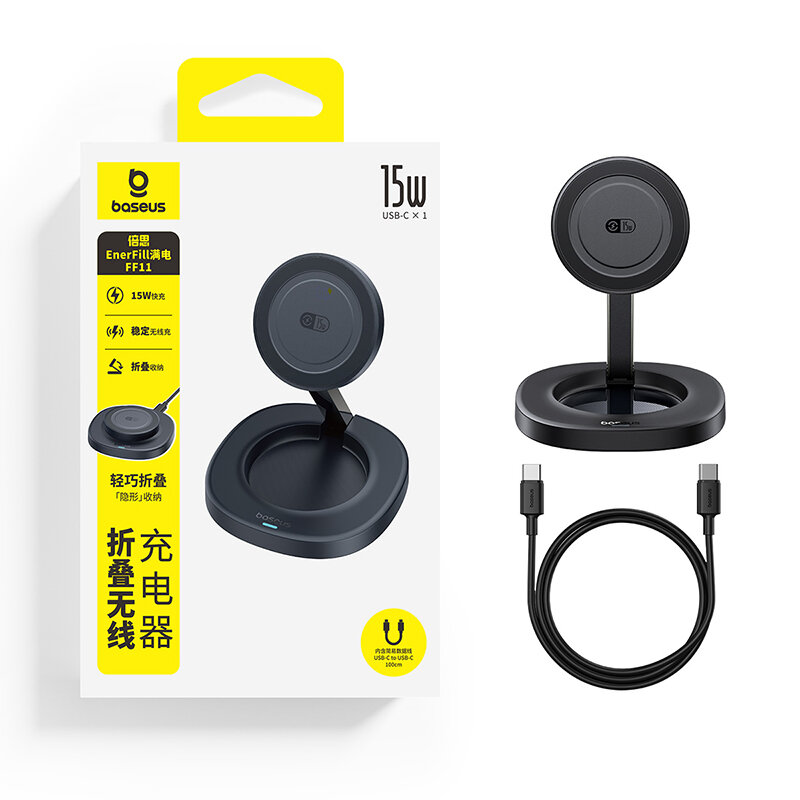 Baseus EnerFill FF11 Foldable Design 15W Magnetic Wireless Charger Fast Wireless Charging Stand for Smart Phones for iPhone 16 16 Pro 15 14 13 Pro Max for Huawei Pura 80 Ultra for Xiaomi MIX Flip2 for SAMSUNG for OPPO