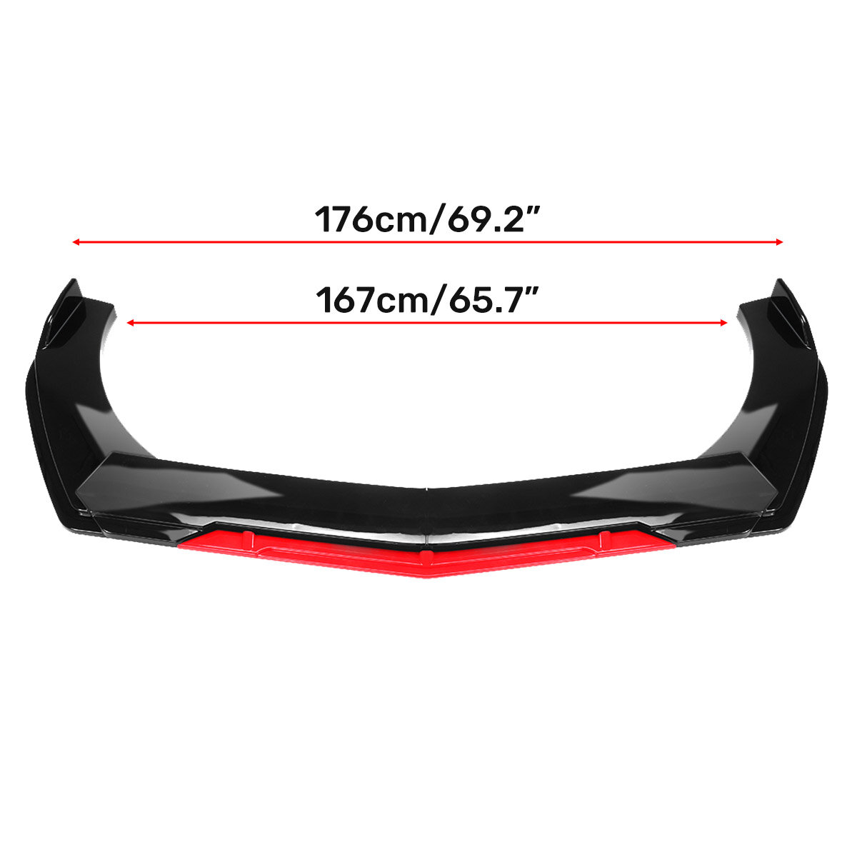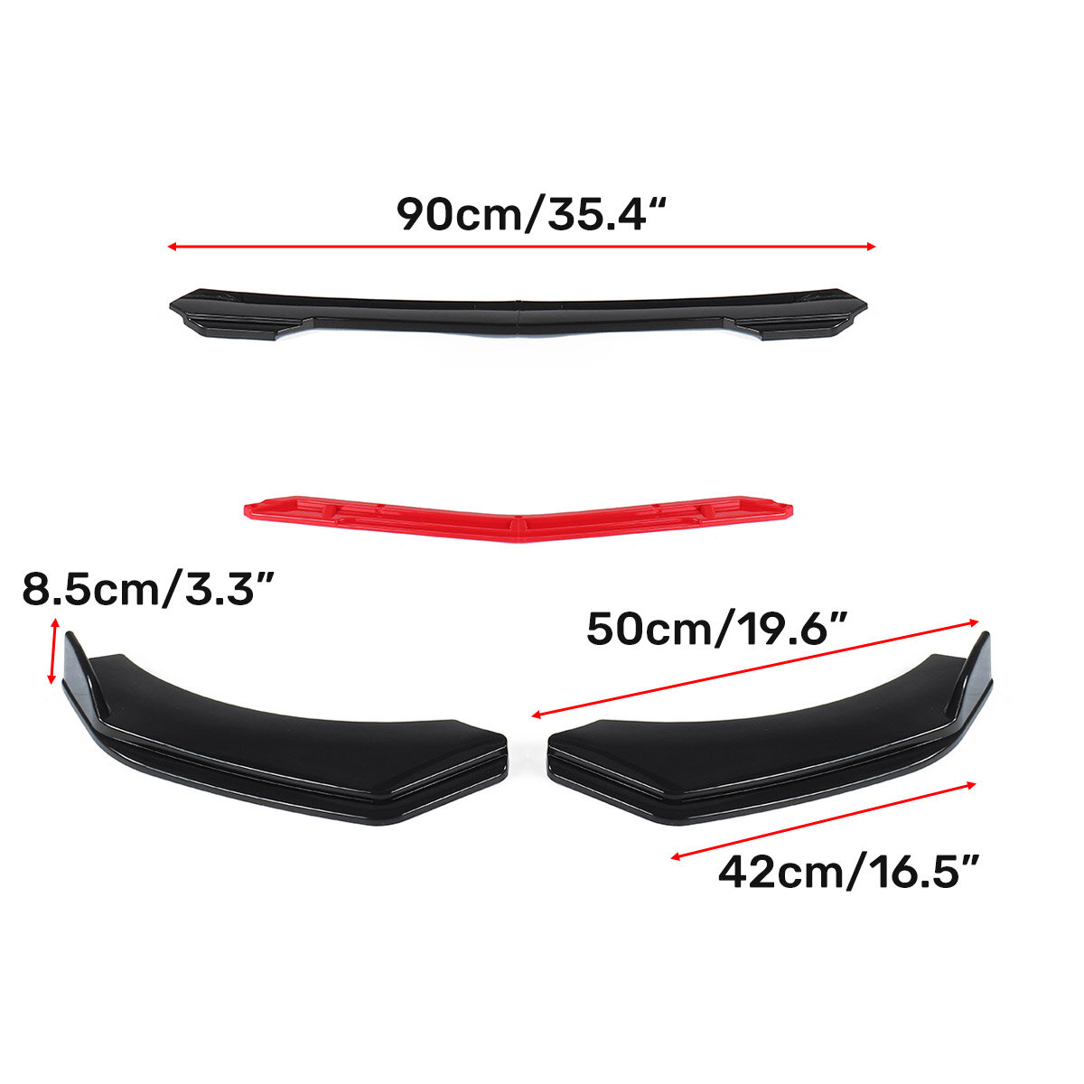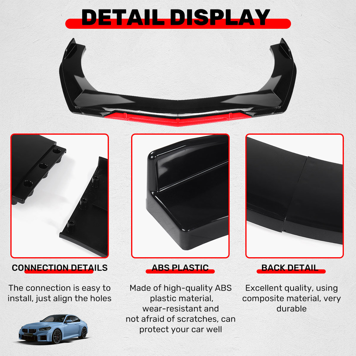 2. Stylish Design: Featuring a glossy black finish with red accents, this bumper lip spoiler enhances the aesthetic appeal of your car, giving it a sleek and sporty look.