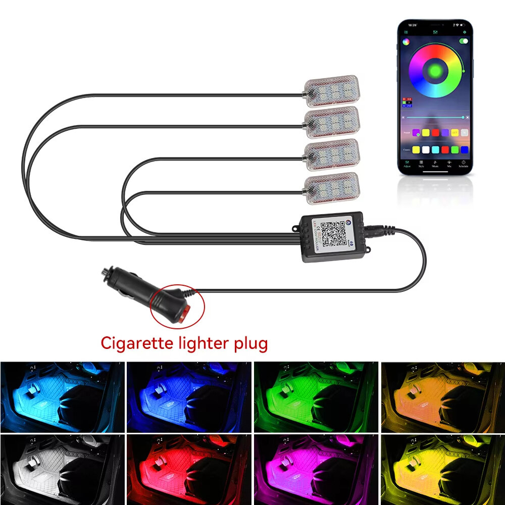 Car Led Interior Ambient Foot Strip Light Kit With USB Lighter Backlight Music Control App RGB Auto Decorative Lamp
