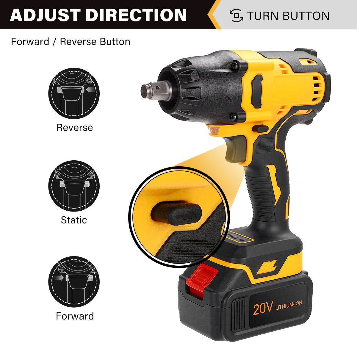 2.Versatile 3-Speed Control System: Equipped with three adjustable speed modes (Low: 0-500 RPM, Medium: 0-1900 RPM, High: 0-2000 RPM), this wrench adapts easily to various job requirements for precision handling.