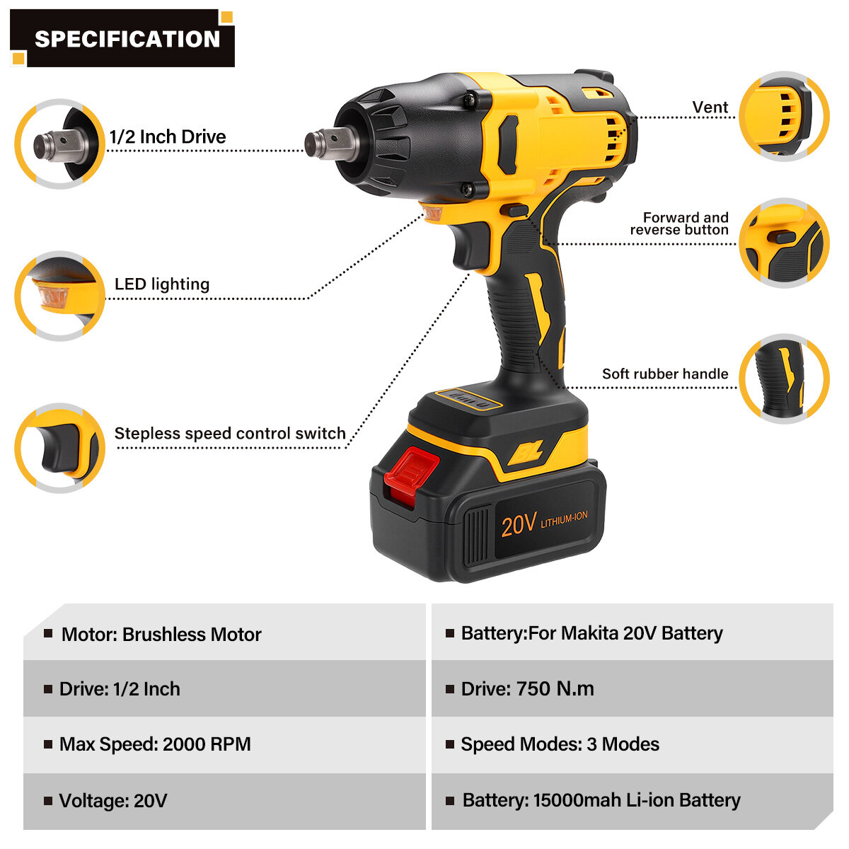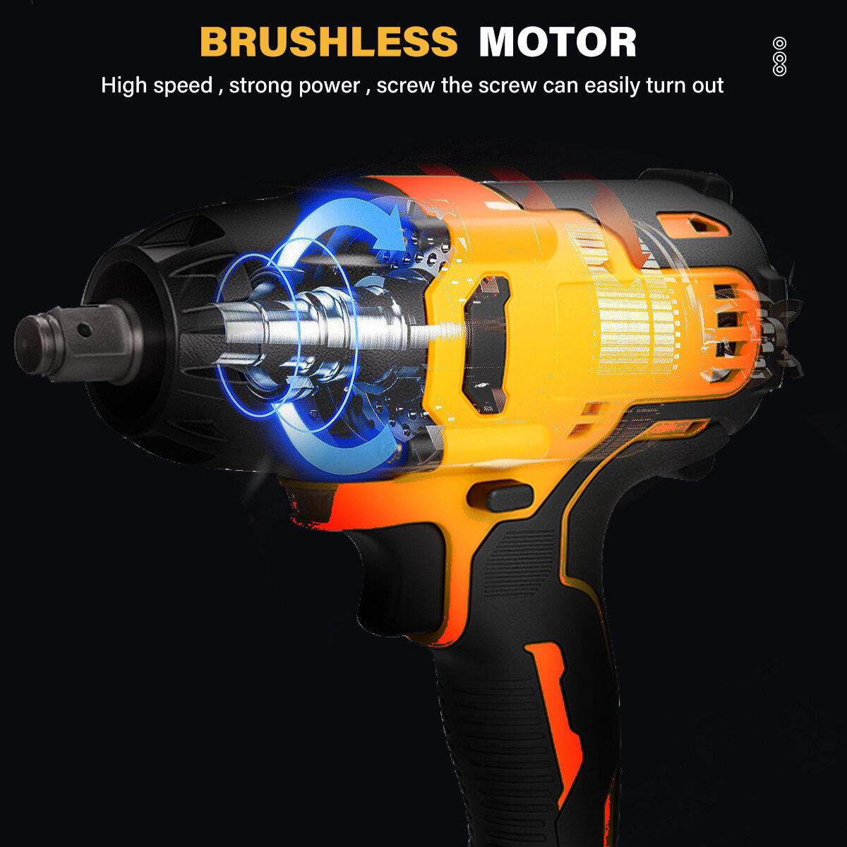 1.Powerful Brushless Motor: Experience high torque delivery with the advanced brushless motor, ensuring efficient operation and extended motor life. Maximize your work performance with up to 555 Ft-lbs of torque for tackling heavy-duty tasks.