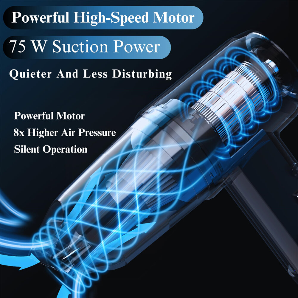 - Powerful Brushless Motor: The high-speed motor delivers 12000Pa suction power for efficient cleaning and low noise below 64dB.