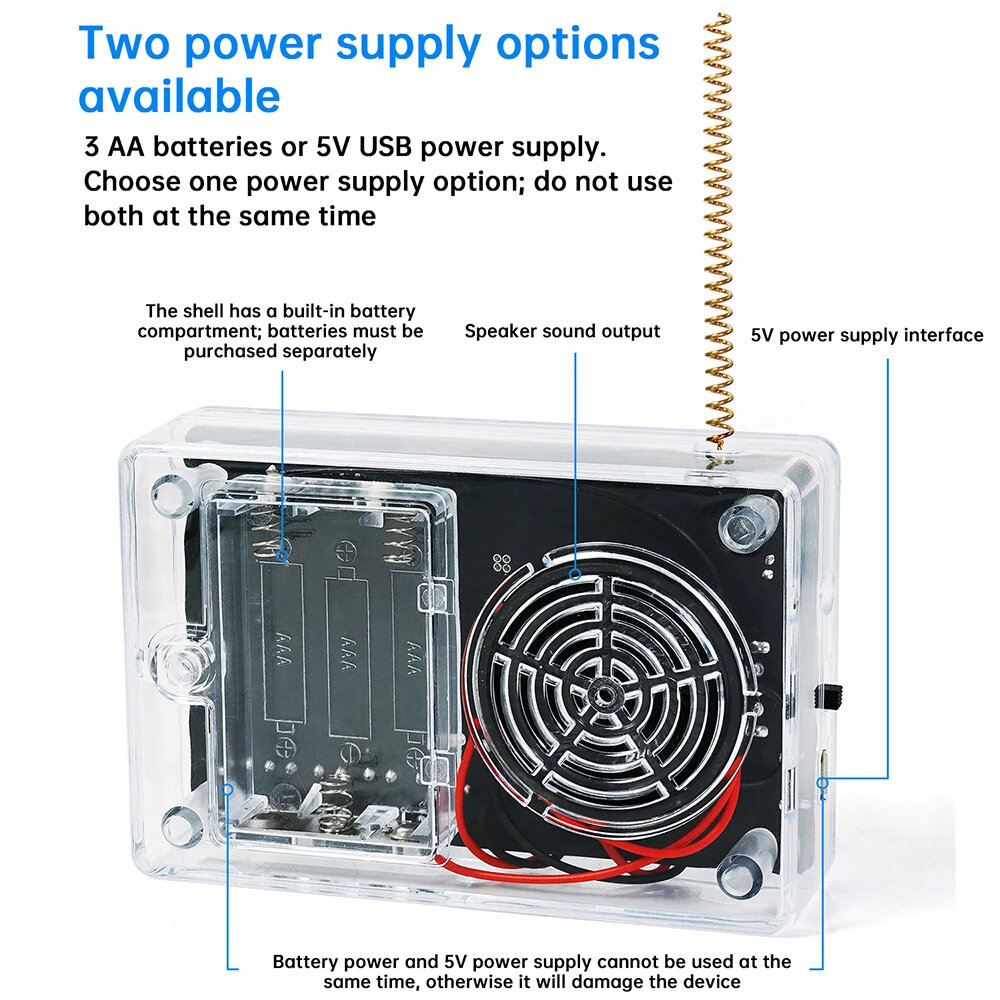 Supported Functions: Automatic station search and storage, power-off memory, sleep mode