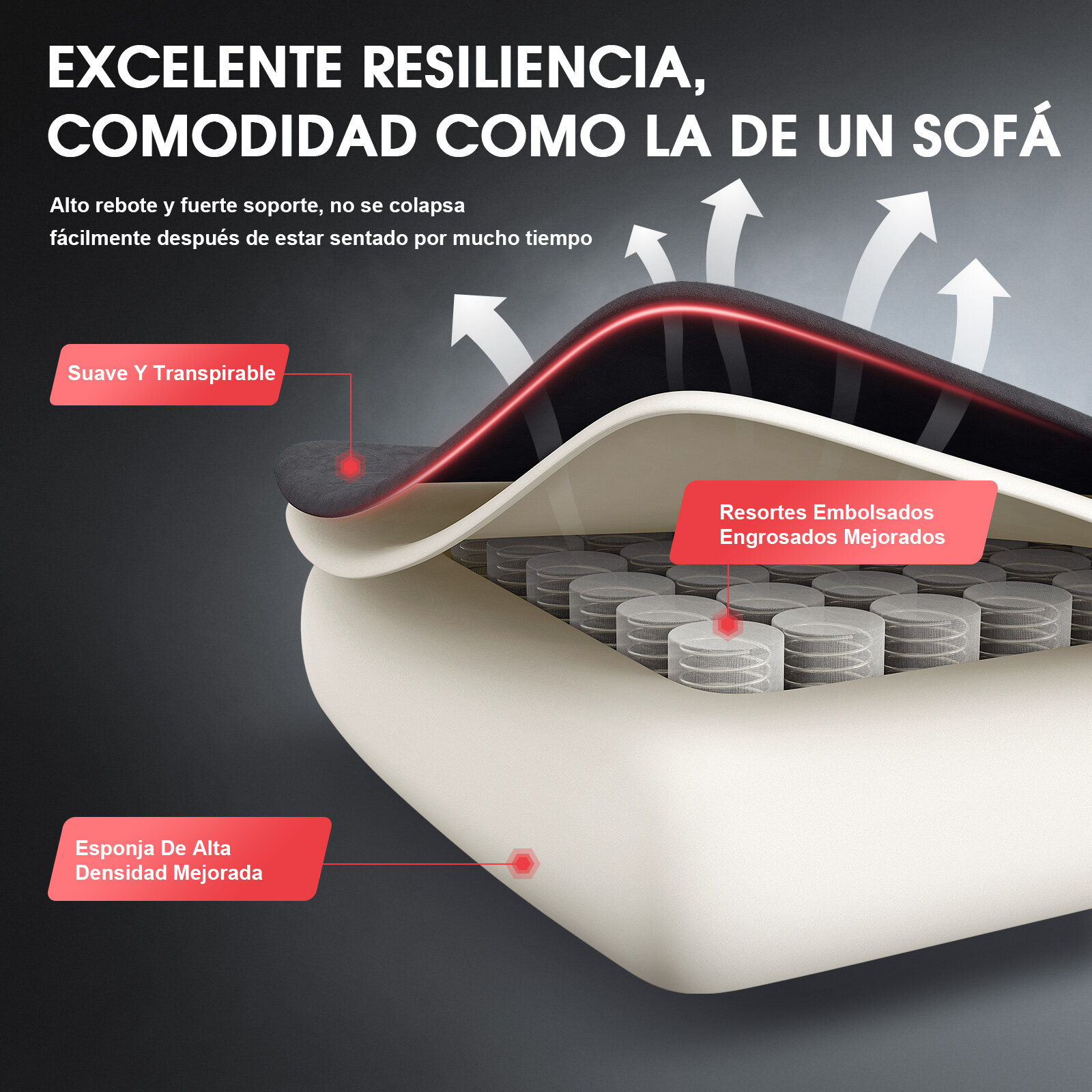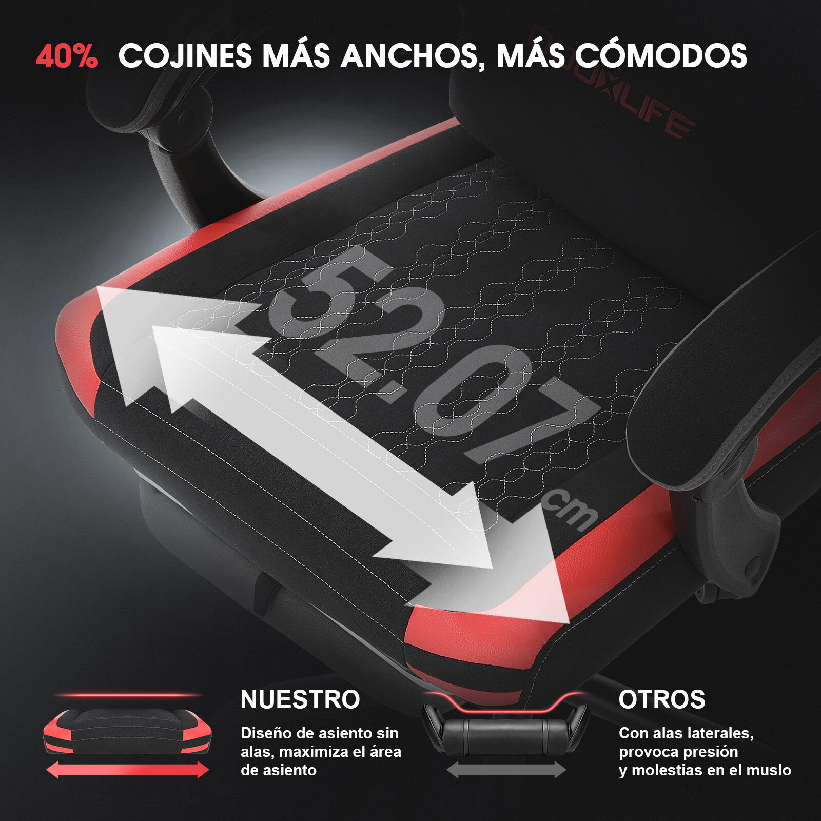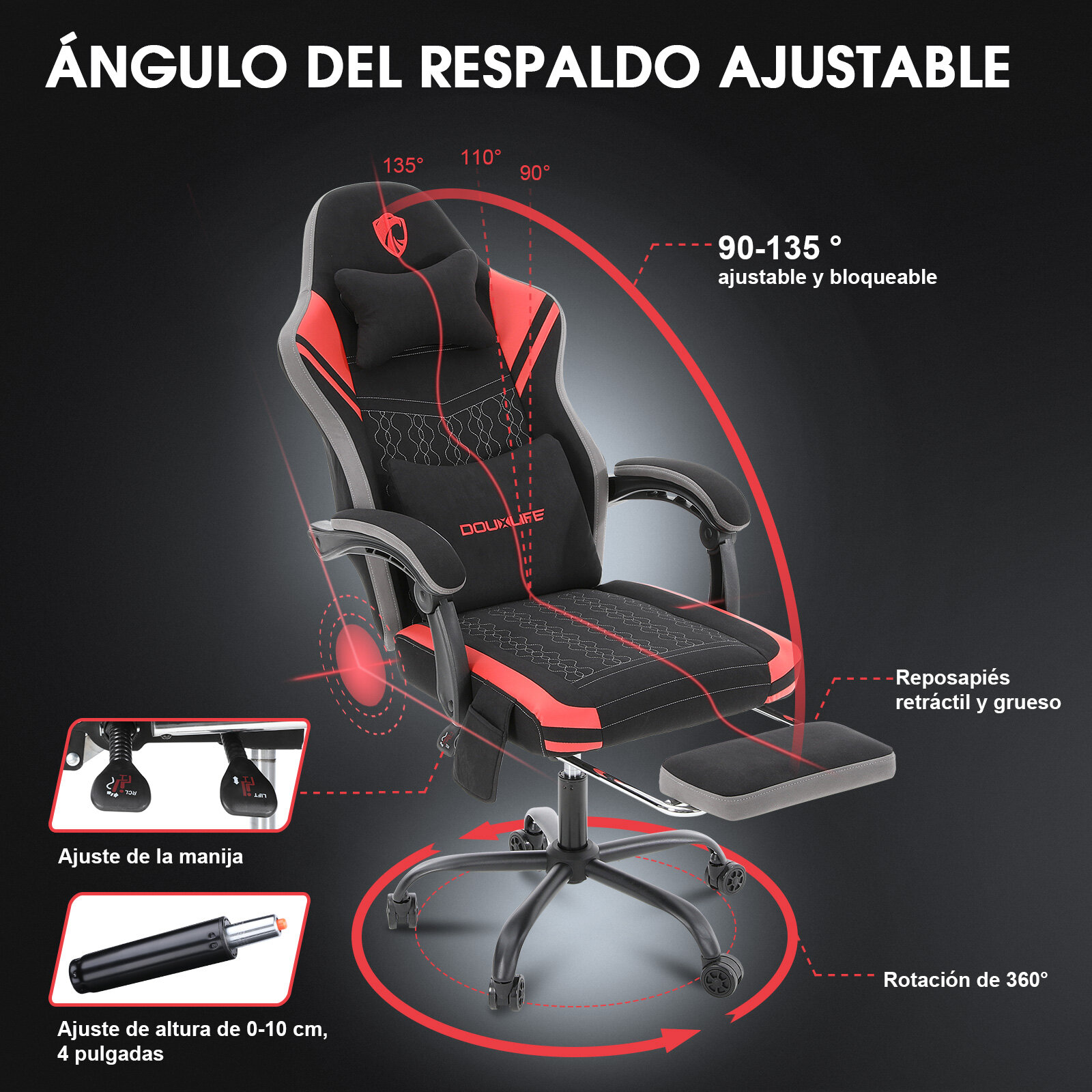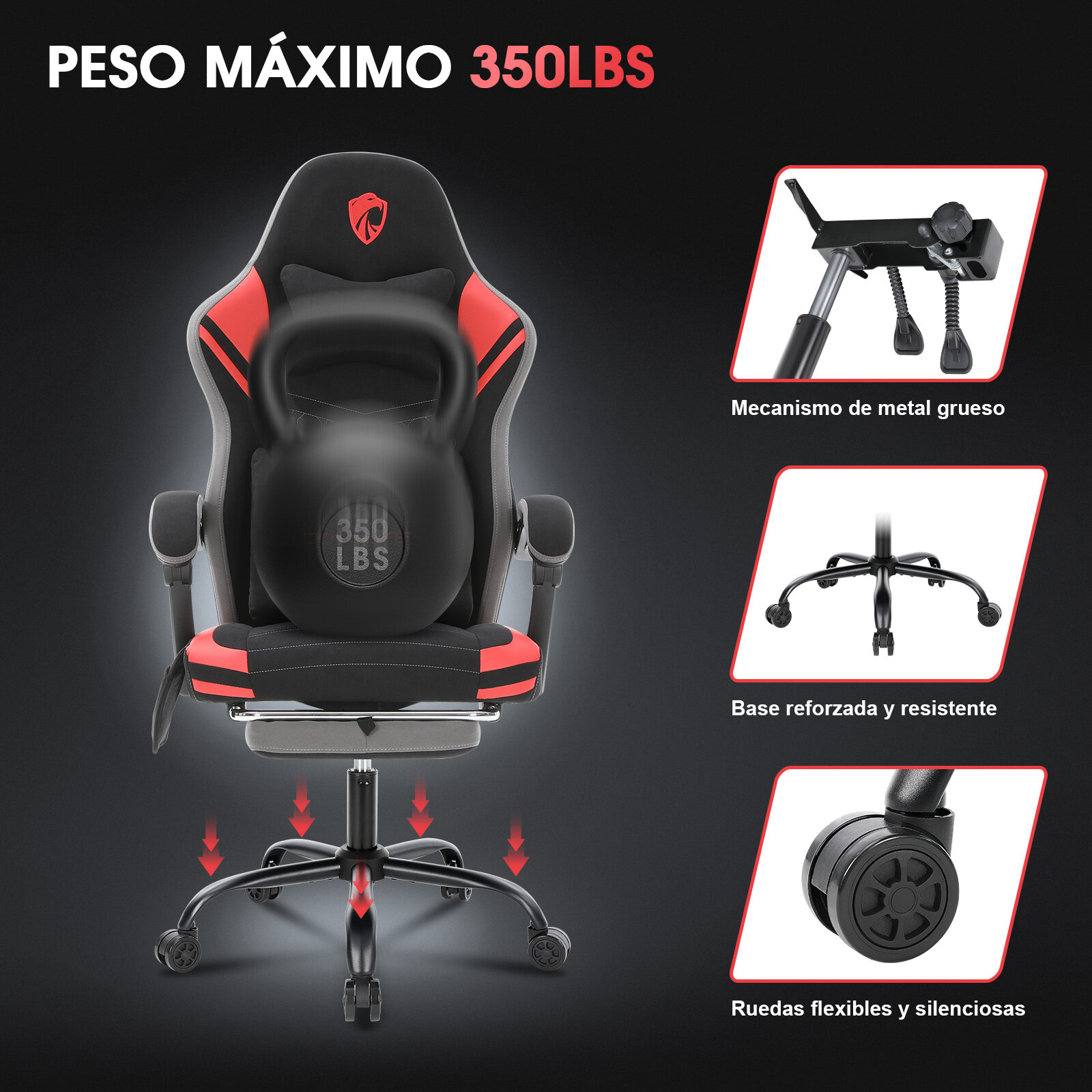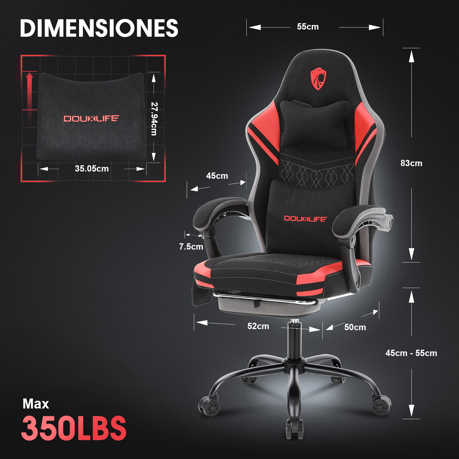 [Elastic & Sofa-like Comfort]: The gaming chair features 2.0mm thick independent springs that enhance elasticity by 45%. The anti-shift fabric layer design effectively disperses body pressure, increasing comfort and better conforming to the shape of the hips. The cushion is made from high-density original cotton with its density increased by 20%, providing better breathability than leather and more water resistance than linen. Its high elasticity and sofa-like comfort make it ideal for long-term sitting. [Flat Seat Cushion Design for enhancing comfort]: This massage gaming chair eliminates the traditional side wings found in common gaming chairs. The widened and thickened cushion (20.47" wide, 4" thick) optimizes and increases seating space by 40%, providing you with more freedom to move and find the most comfortable sitting position. The lumbar pillow is taller and thicker (11"*3.1"), optimizing the area by 80% to improve lumbar support, conforming to ergonomics, and reducing the burden on your waist during long periods of sitting. The ergonomic gaming chair is also equipped with a massage function to relieve fatigue and pain during gaming or work, helping to relax your body. [Upgraded Tech Fabric Material]: This comfortable office chair uses advanced tech fabric instead of traditional PU leather, greatly enhancing breathability and tactile feel. The tech fabric combines the breathability of cotton-linen with the smooth feel of velvet, making it wear-resistant and pet-scratch resistant and not prone to pilling, while providing exceptional comfort. [Upgraded Materials for Better Weight Capacity]: This video gaming chair features a high-strength Class-A metal frame, a thickened explosion-proof base, and a Class-3 gas lift, making it resistant to tipping over. Its maximum load-bearing capacity is 350 lbs, ensuring sturdiness and stability. The chair is equipped with silent universal wheels that allow for stable and flexible rotation while protecting your floor. [135° Adjustable Chair for Easy Reclining]: Our comfortable office chair is equipped with an extendable and thickened footrest, and the backrest can be adjusted to any angle between 90° and 135°, heling you find a suitable angle. This computer gaming chair with footrest is the ideal choice for adults,women or kids for working, gaming, studying, and resting.