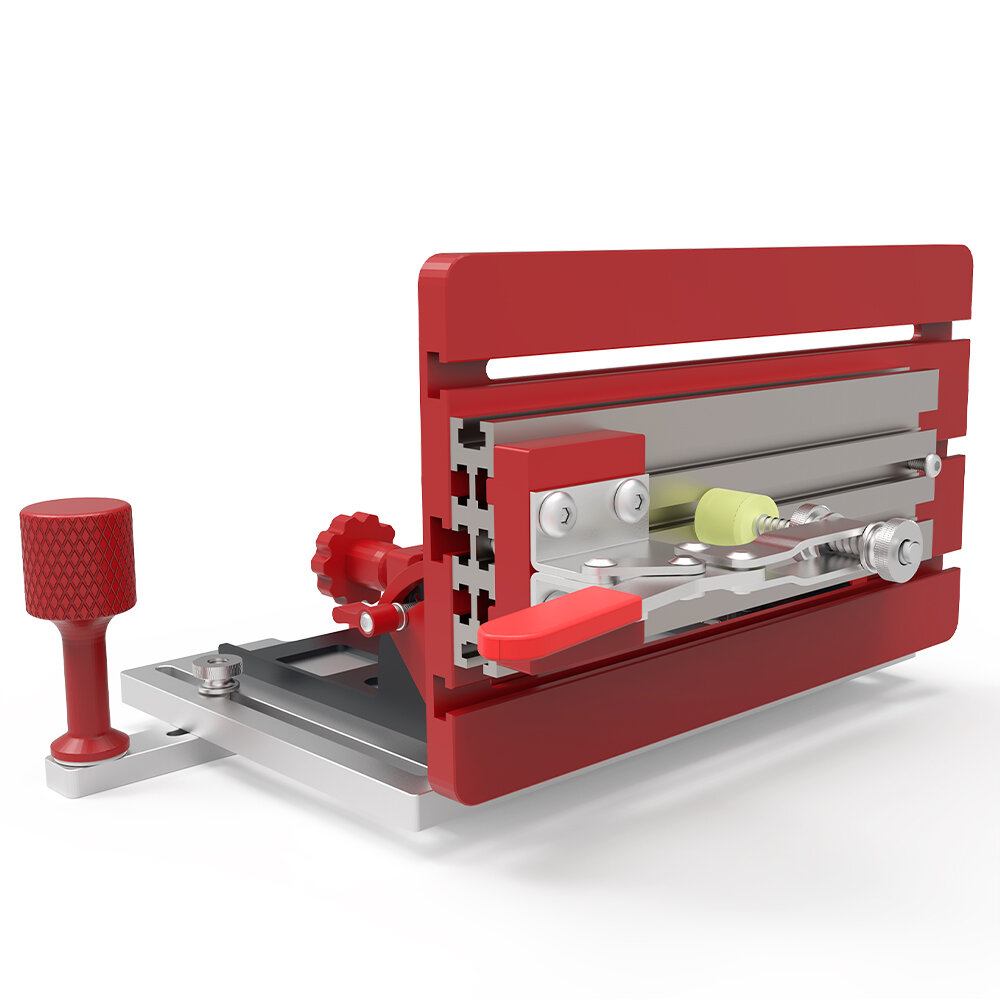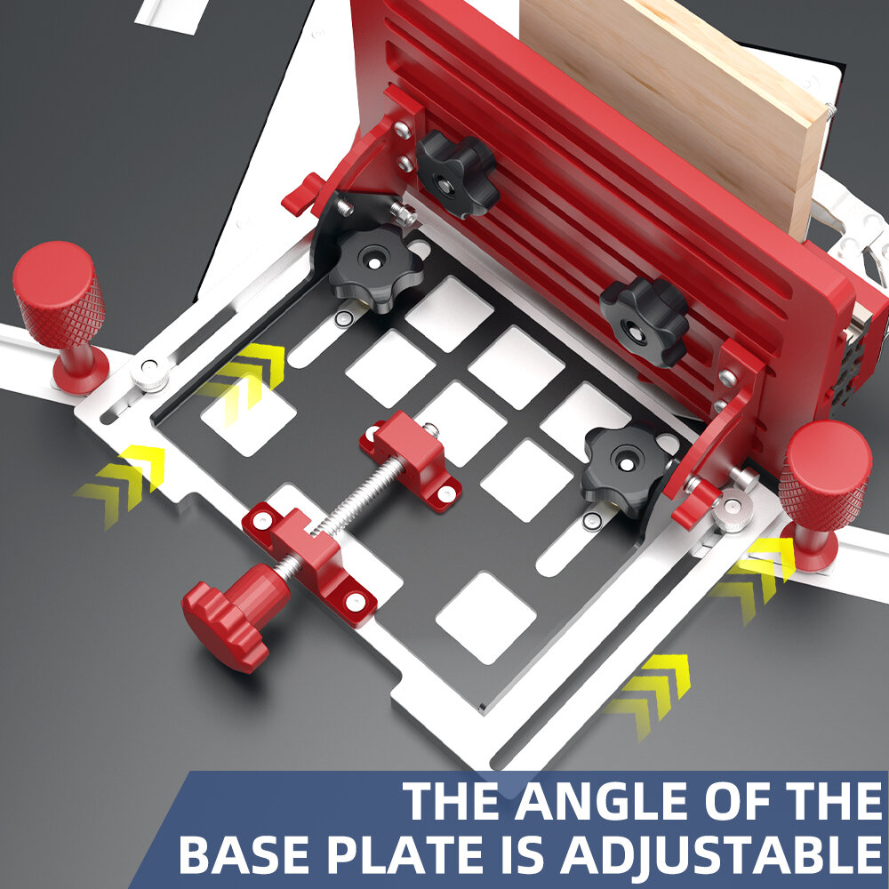 The base plate features adjustable positioning options for greater alignment accuracy and a smoother workflow.