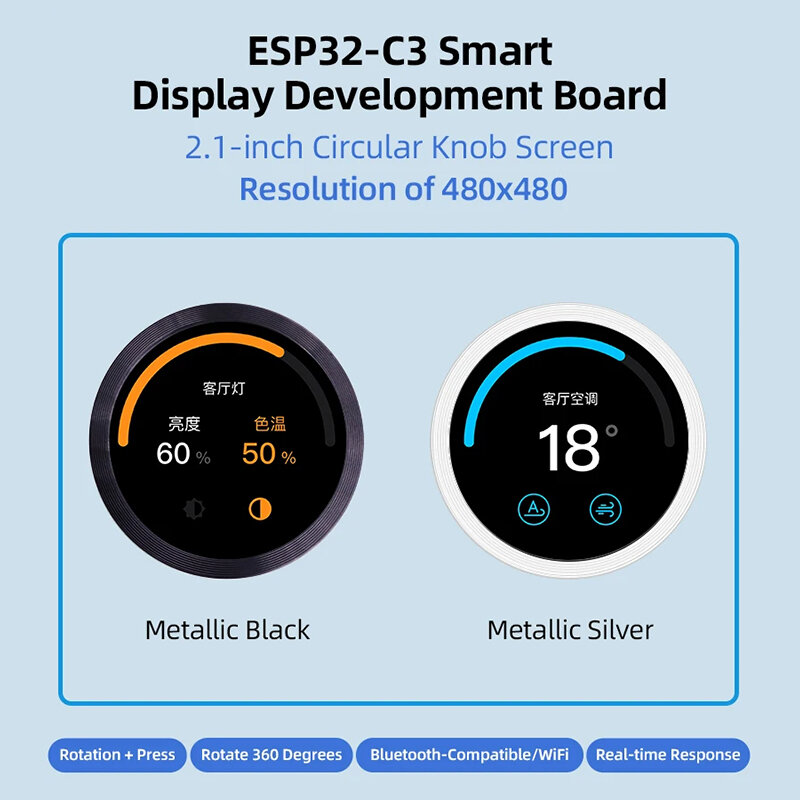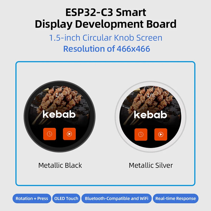 ESP32-C3 processor delivers up to 240 MHz CPU frequencies, supporting rapid computations and seamless integration with Arduinos and LVGL frameworks.