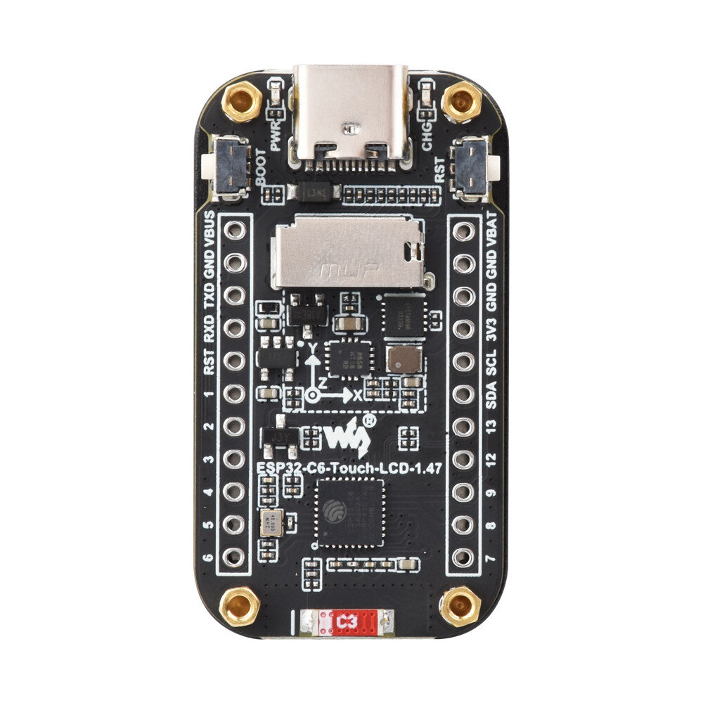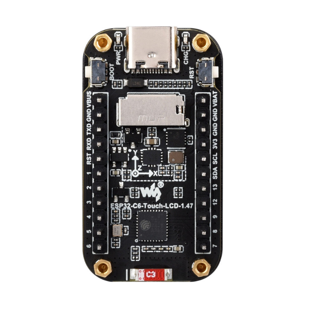ESP32-C6-Touch-LCD-1.47 uses ESP32-C6FH8 chip with 2.4GHz WiFi 6 and Bluetooth BLE 5 support, integrates 8MB Flash, Onboard 1.47inch IPS display can smoothly run GUI programs such as LVGL. It is suitable for the quick development of the HMI and other ESP32-C6 applications.