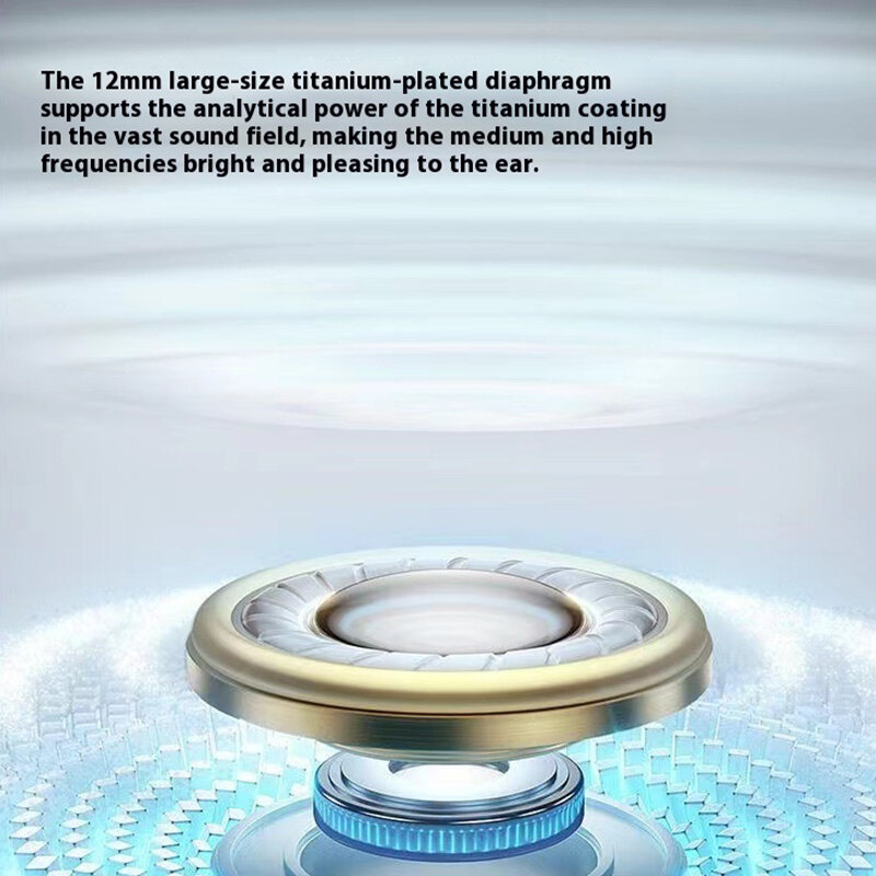 Equipped with a 12mm large titanium-plated moving coil, the earphones deliver exquisite sound detailing. The wide sound field enhances bass depth while producing clear mids and vibrant highs. Feel the brilliance of every note with powerful acoustic resonance.