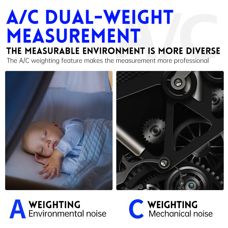 4.Dual A/C Frequency Weighting Modes: Supports both A and C weighting modes to meet diverse sound measurement standards for professional applications.