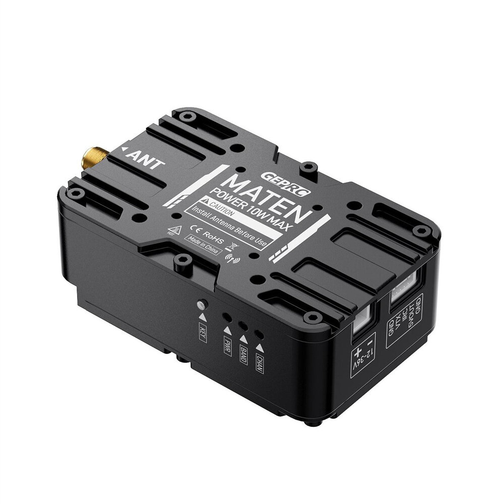 The MATEN 5.8G 10W VTX PRO is a high-performance VTX newly developed by the GEPRC team. With four adjustable power options, it delivers up to 10W of power. The frequency range is 4884-6184MHz, and it supports direct frequency input by the configurator, ensuring stable signal transmission and excellent penetration.