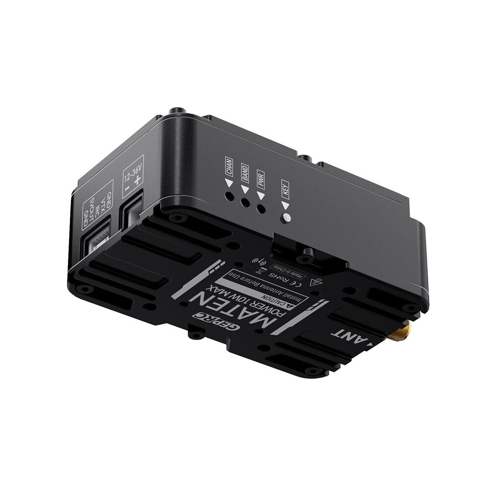 Built with a high-strength CNC aluminum alloy shell, the MATEN 5.8G 10W VTX PRO offers superior heat dissipation and impact resistance. Its sleek design features a fan cooling function for optimal performance. Supporting the IRC Tramp protocol, it allows you to adjust parameters through OSD.
