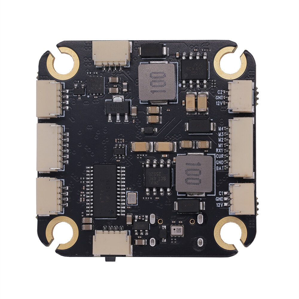 Feature: 1. The PCB is made of high-end 6-layer 1oZ thickened copper skin, which has strong anti-interference ability. 2. Adopt double gyroscope design to reduce the error of one gyroscope. 3. Adopt industrial-grade LDO, high temperature resistance. 4. Comes with DJI sky straight socket, easy to install, solder-free. 5. Reserve the 5V power supply of the external LED strip light, and the remote control channel can be customized to control the switch of the strip light. 6. Image transmission power supply. 7. Adopt high-quality Japanese Murata capacitors, strong filtering performance. 8. Ten motor control signal output. 9. It can support Betaflight, Ardupilot, INAV and PX4 firmware. 10. Support digital video transmission and analog video transmission, and can support dual cameras. 11. Insert an external MicroSD card. 12. Support airspeed tube, magnetometer, data transmission 13. 8 serial port 14. Support dual servos 15. Support CAN port 16. Support dual galvanometer interface, default C1, C1, C2 can be switched freely through the remote control. Specifications: Brand: HAKRC Model: H743 8S Flight Controller