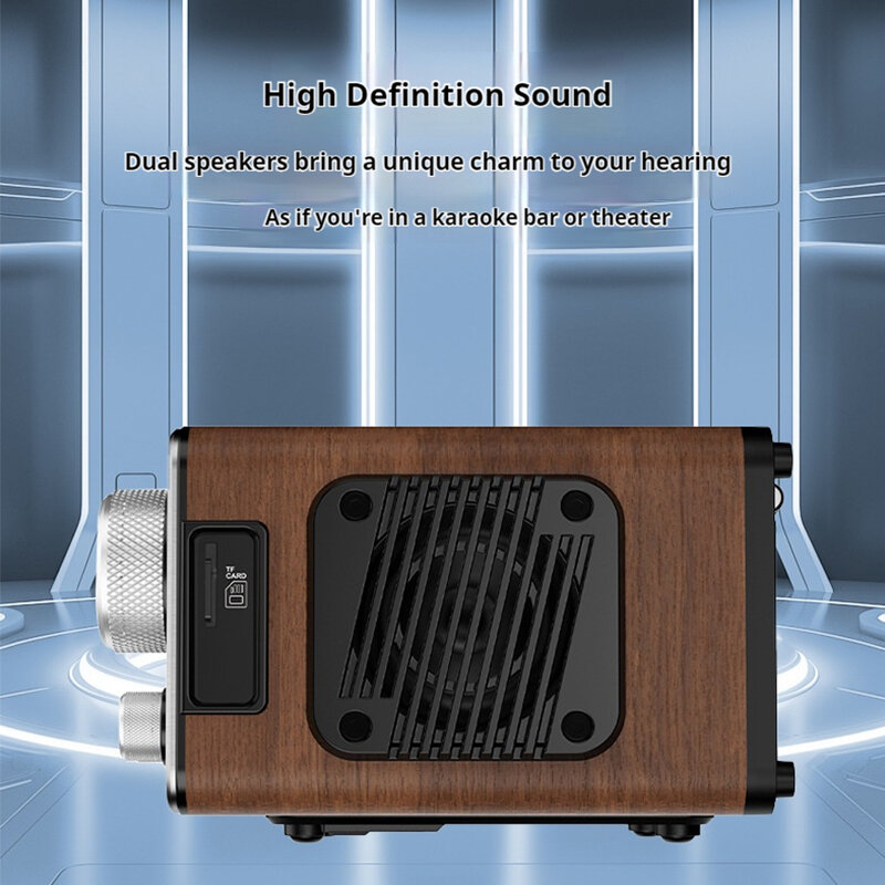 HanRongDa HRD-802 Wooden bluetooth Speaker Multi-band Radio Dual Speaker Portable Radio with VA Display Screen Dual 52mm Speakers Bass Support TF Card 3.5mm Playback Alarm Clock Full Band FM Radio Player Speakers