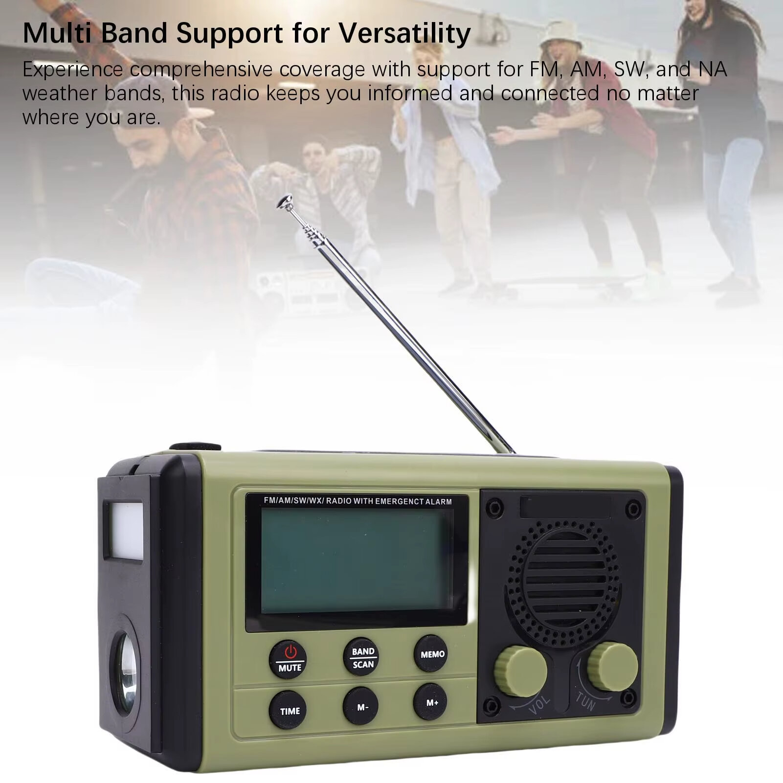 1. Multi-band Functionality: Supports FM, AM, SW, and WX weather bands for versatile broadcasting options.