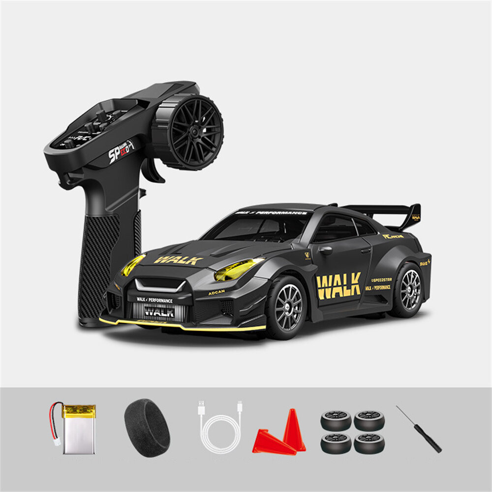 Fully proportional electronic steering, gyro sensitivity adjustment, speed control, and controllable front, rear, and chassis lights. Speed: approximately 20 km/h