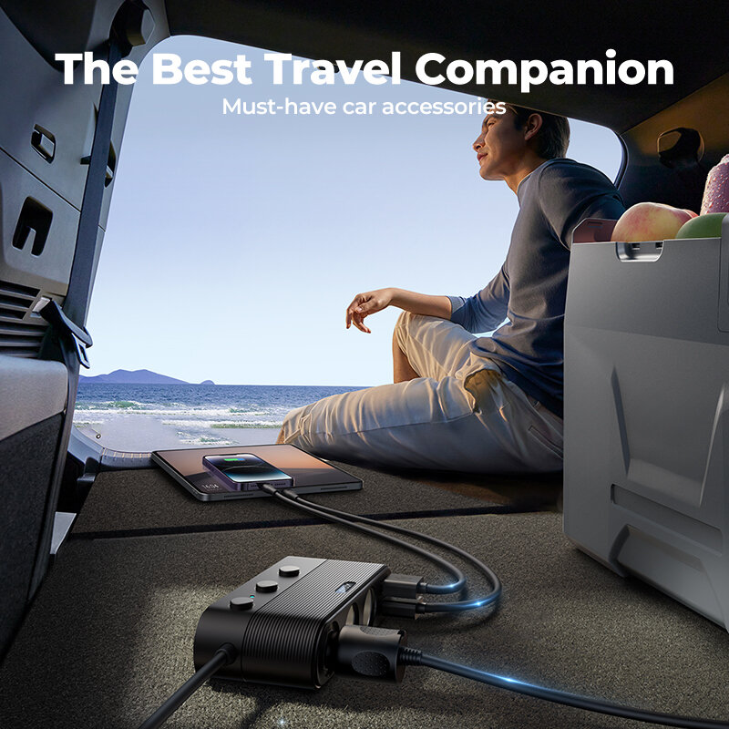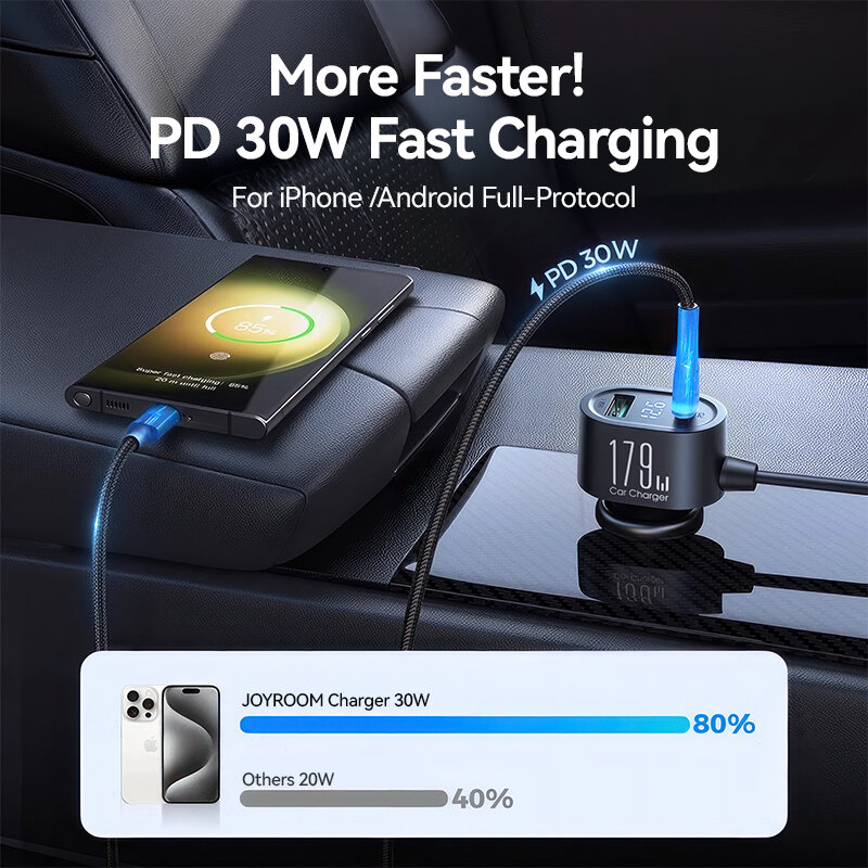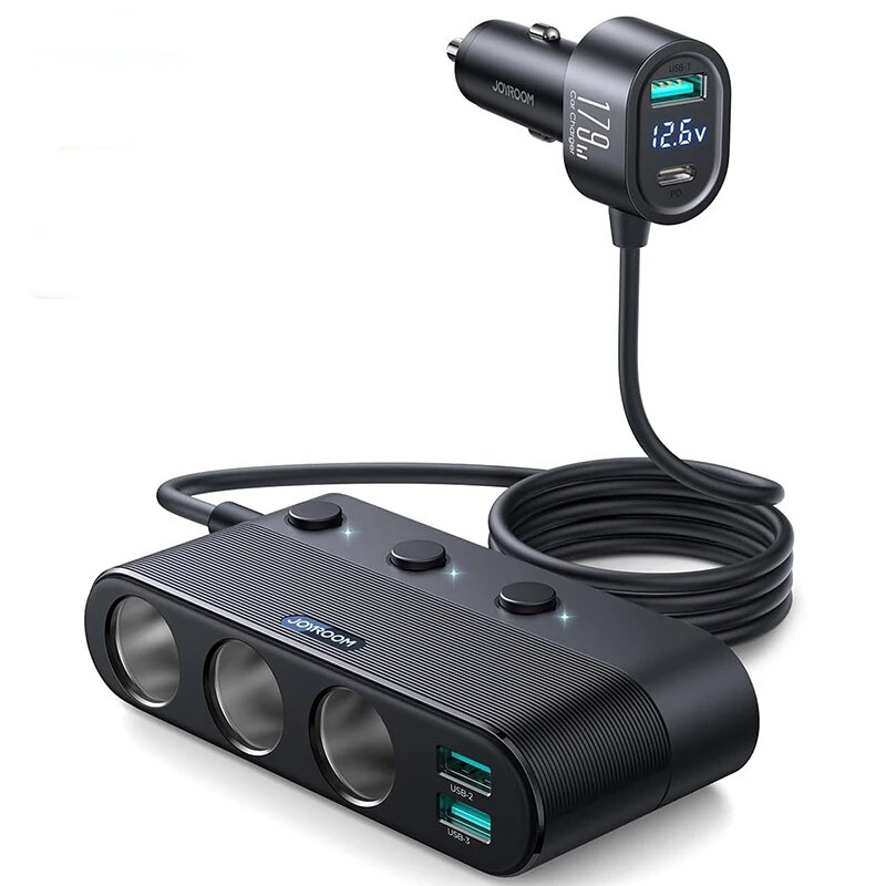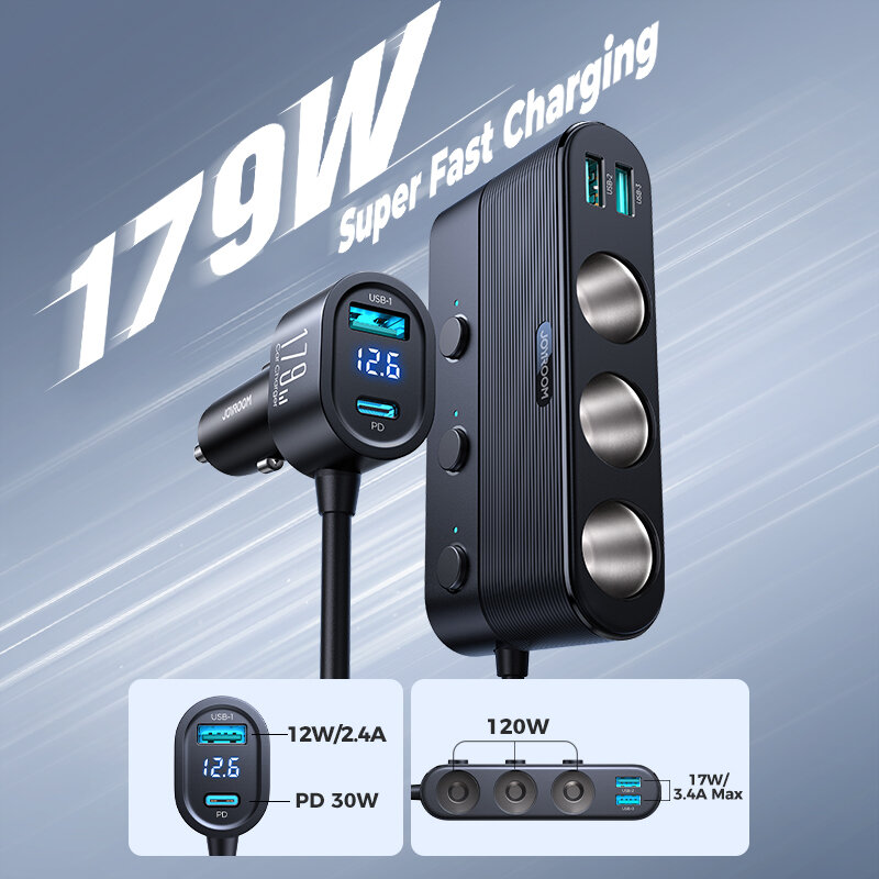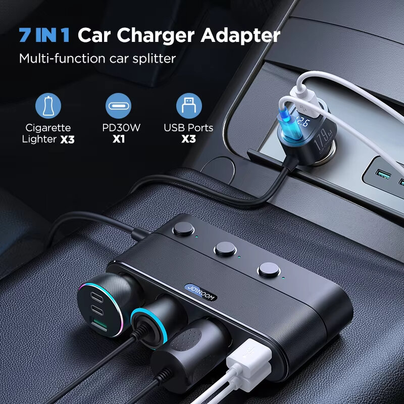 1.[ 179W CigaretteLighter Adapter ] - JOYROOM CigaretteLighter USB Charger equipped with 4 charging ports and 3 cigarettelighter adapter sockets, which provide 179W in total. Car Charger Adapter Fast charge 7 devices simultaneously in your 12V/24V vehicles. Multi port car charger perfectly fits with your GPS, Dash Cam, Vacuum Cleaner, Car Fridge, Heated Seats, Sat Nav, etc. (Single socket power does not exceed 120W) 2.[ Super Fast PD30W Charging ] - The usb c car charger supports PD30W, 3 times faster than PD20W. The built-in Intelligent chips of the fast car charger adapter auto-recognize the distribution current for simultaneous fast charging, compatible with iPhone/Samsung/Motorola/TCL/LG, etc. 3.[ Independent Power Switch ] - We Upgraded the independent switch for each cigarettelighter splitter not only to expand the lifespan of the USB C Car Charger Adapter effectively but also to save you from repeatedly plugging in & out. 4.[ LED Voltage Display ] - JOYROOM usb cigarettelighter adapter with a real-time LED voltage display monitors the output of the car battery. A reminder to replace unhealthy car batteries in a timely manner. [12V voltage normal range: 11.5V~14.9V; 24V voltage normal range:23.1V~27.3V] 5.[ Wide Compatibility ] - JOYROOM Car CigaretteLighter Adapter is widely adaptable and supports a Dash Cam, GPS, FM Transmitter kettle, Refrigerator, Vacuum Cleaner Inflator/Deflator Pumps, etc. This Car Charger is definitely the best companion for your travel/camping!