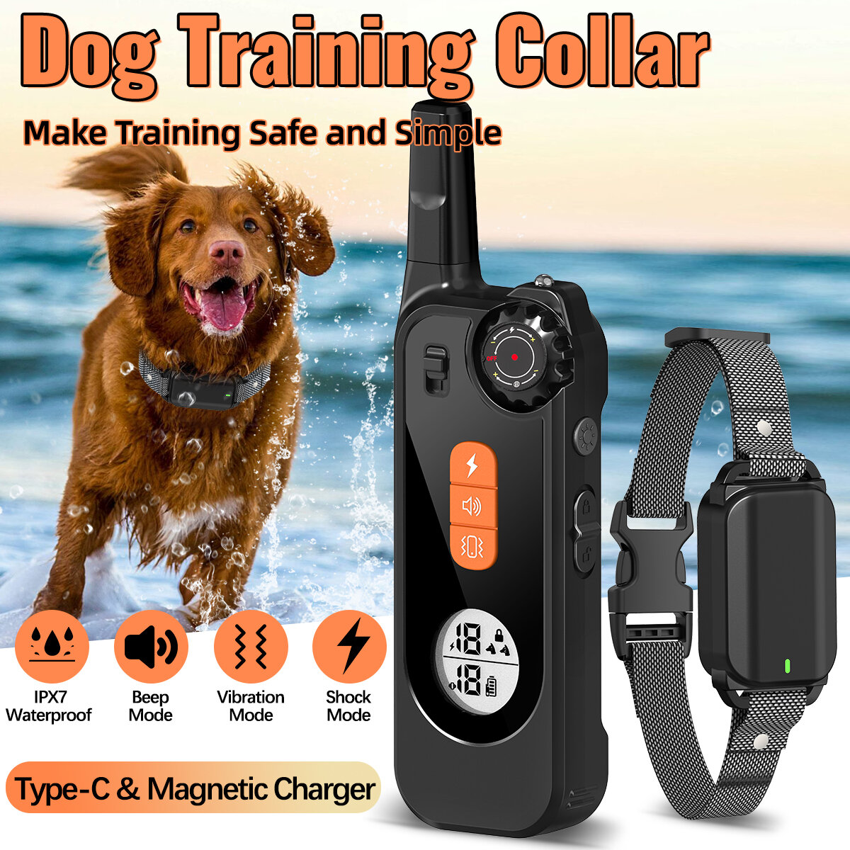 4. Waterproof Collar: IPX7-rated receiver enabling stress-free usage during water activities.