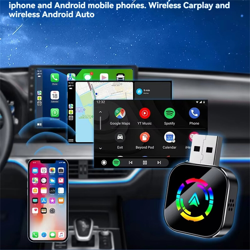 LAESD Wireless CarPlay Adapter Plug and Play Connection Stable WiFi Bluetooth 5.0 Sync Phone Voice Control CarPlay Android Auto
