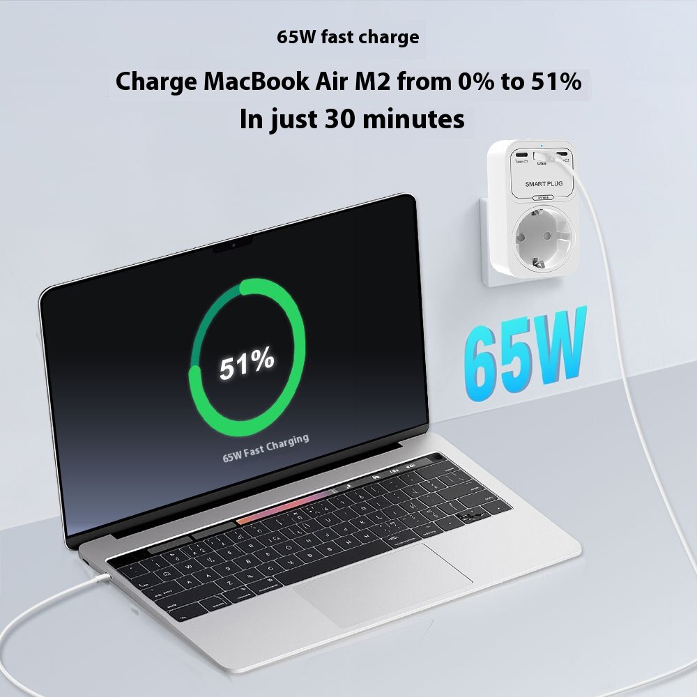 1. 65W Fast Charging: Supports Power Delivery (PD) fast charging, capable of charging devices like laptops to 51% in just 30 minutes.