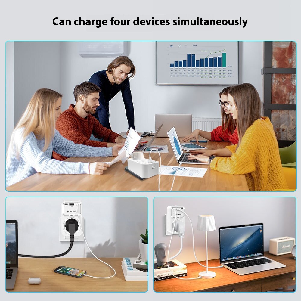 2. Multiple Ports: Includes 2 Type-C ports and 1 USB-A port for simultaneous charging of up to 4 devices.