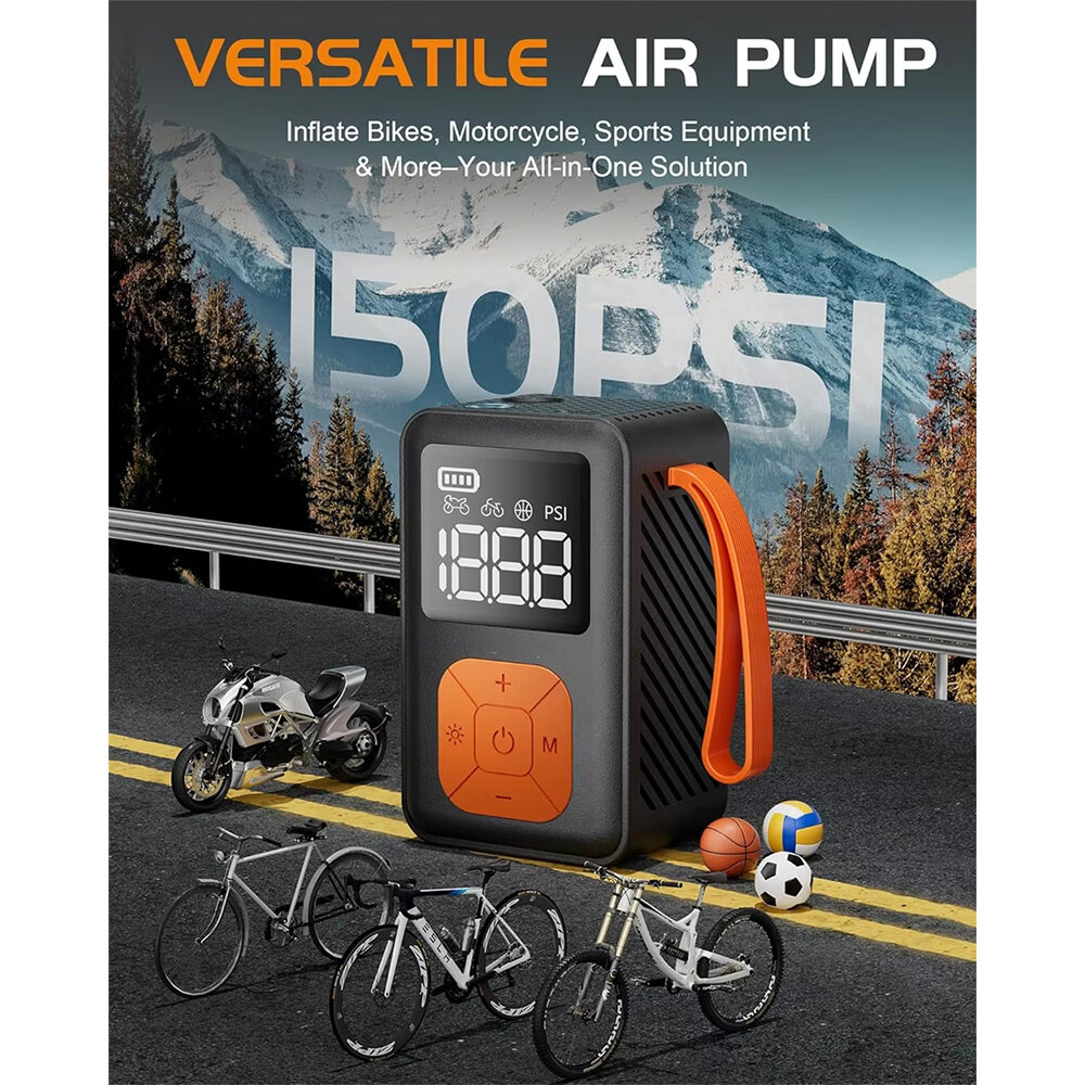 - Bright digital display provides real-time pressure readings for precise inflation up to 150PSI.