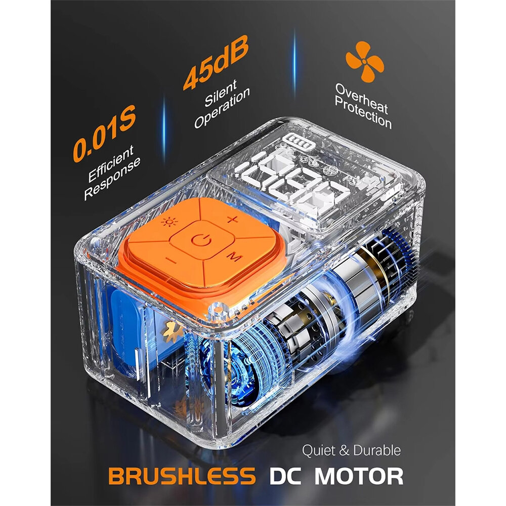 - Brushless motor 45dB ensures quiet inflation with overheating protection.