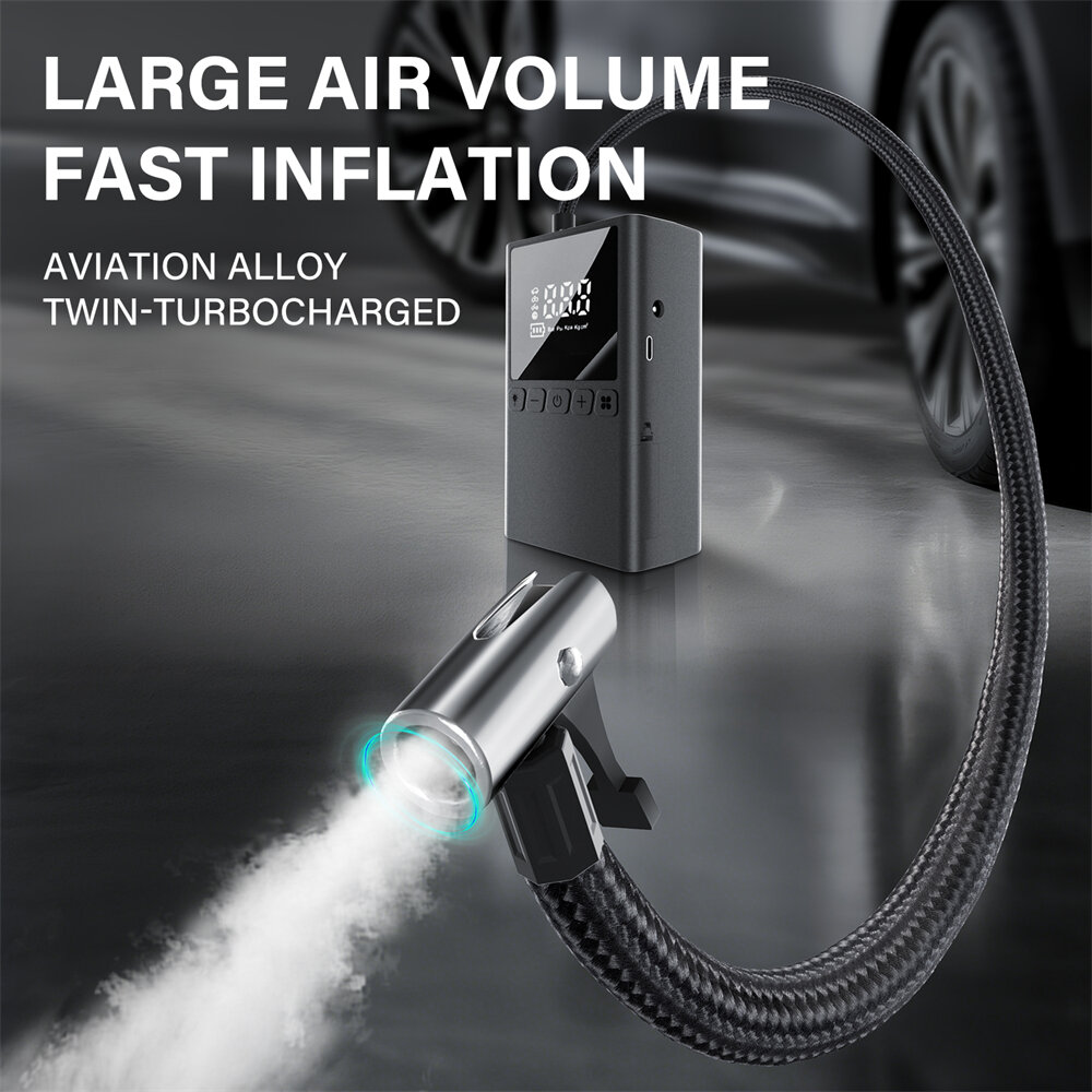 3. High-Speed Inflation: Twin-turbocharged motor inflates tires quickly, achieving up to 300% performance improvement.