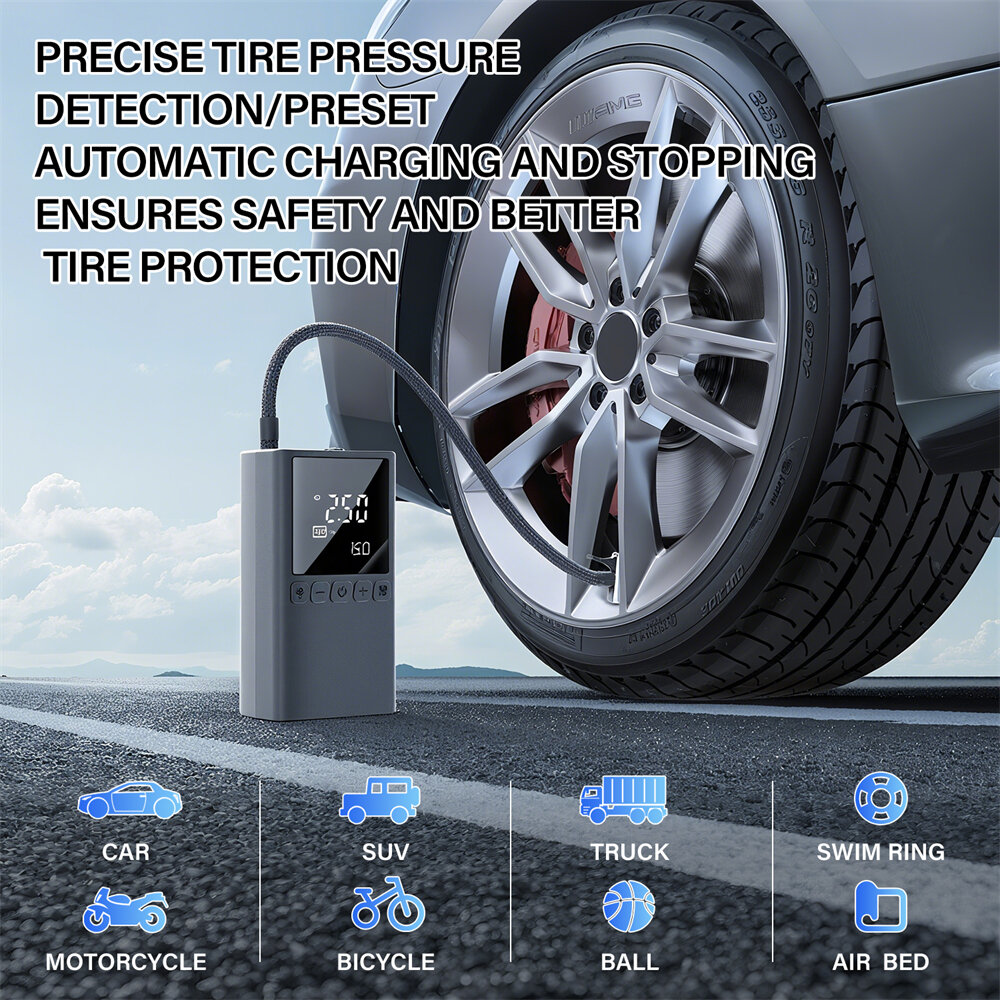 1. AI-Powered Accurate Inflation: Built-in AI sensor automatically stops at preset pressure to prevent tire wear or overinflation.