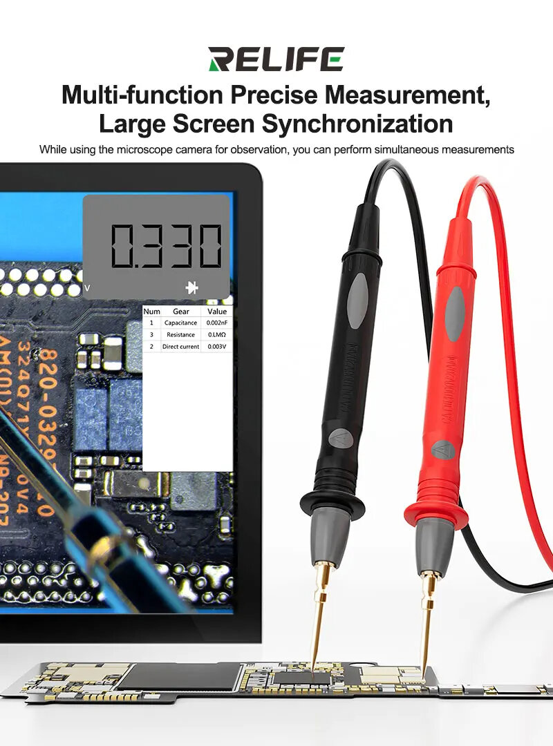 Combines an advanced 4K industrial microscope camera with a precise multimeter for streamlined repairs, saving time and enhancing workflow for electronics professionals.