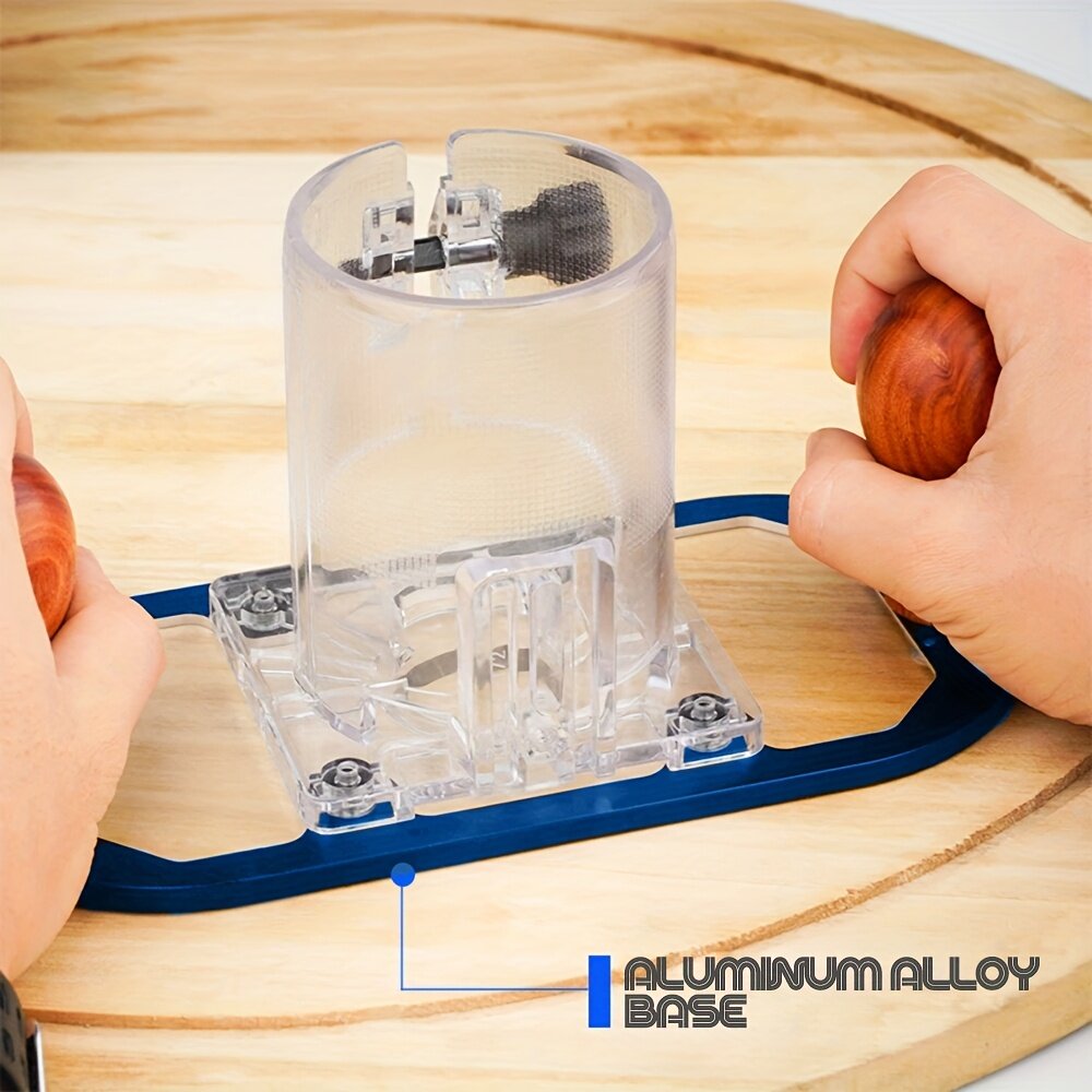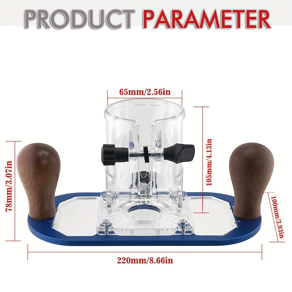 1.Precision Adjustable Depth Equipped with an easy-to-use adjustable depth knob, allowing quick and accurate blade positioning for consistent trimming performance. 2.Ergonomic Wooden Handles Smooth wooden handles provide a natural grip that enhances handling and control during extended woodworking sessions. 3.Transparent Design for Visibility Clear acrylic build allows unobstructed visibility of the trimming path, ensuring greater accuracy and a professional finish. 4.Optimized Compatibility Specifically designed for trimming machines with a 65mm (2.56-inch) inner diameter to ensure perfect fit and ease of use. 5.Anti-Slip Stability The base reduces movement and provides steady control, ensuring consistent results even on challenging edges.