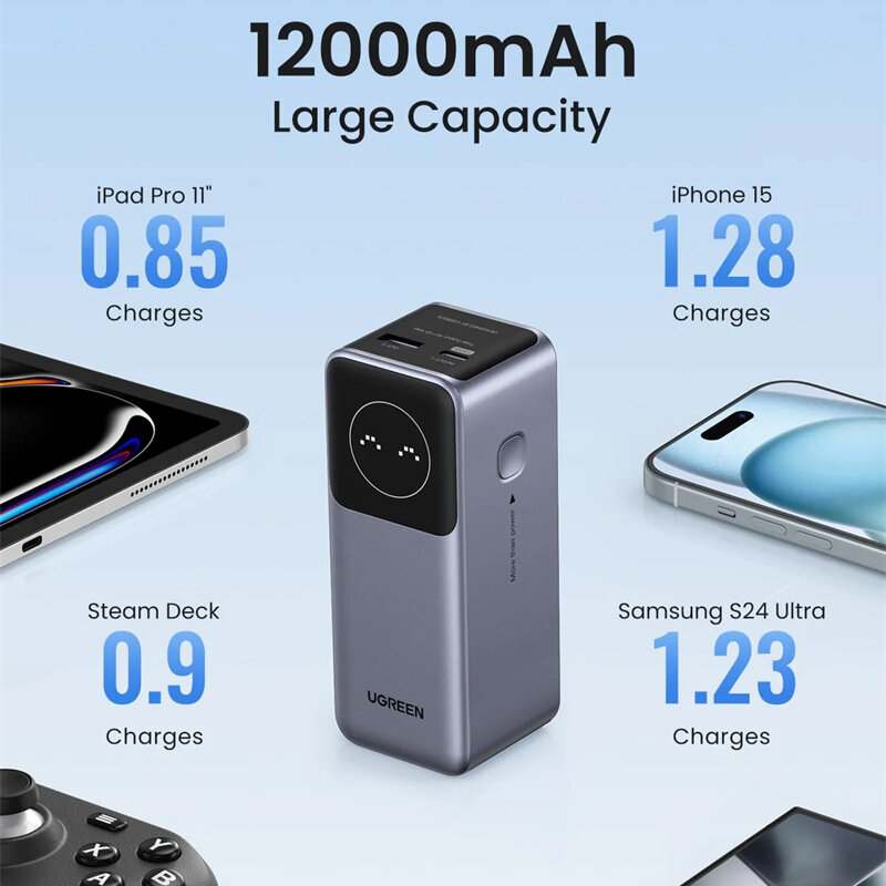 3. Multiple Outputs: Equipped with USB-C1, USB-C2, and USB-A outputs, allowing you to charge up to three devices simultaneously.