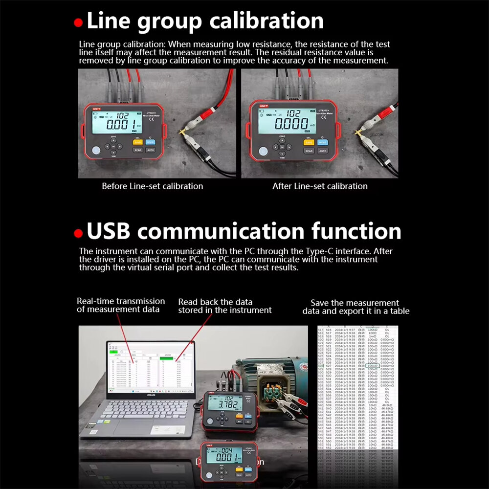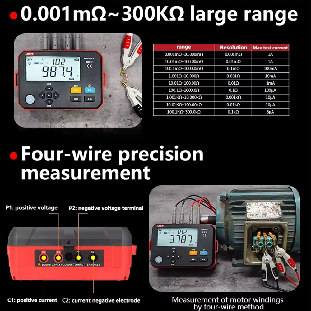1.High Precision Four-Wire Measurement: Achieves highly accurate low resistance readings using a reliable four-wire measurement system designed to minimize interference.