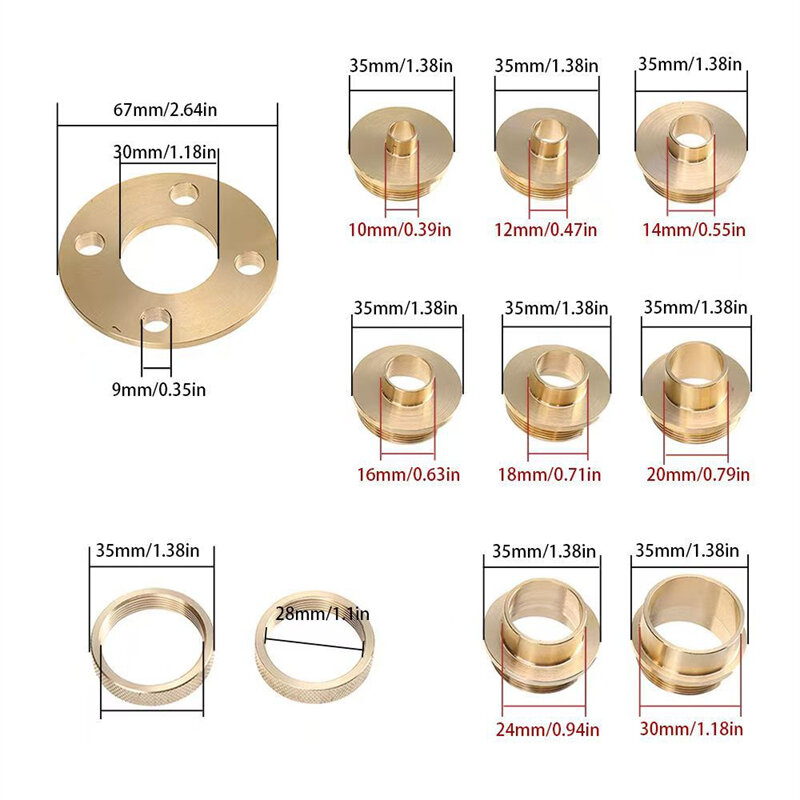 4.Enhanced Template Routing Capabilities: The set includes 11 brass template bushings, enabling precise trimming, shaping, and template-guided routing operations, offering greater control for intricate patterns.