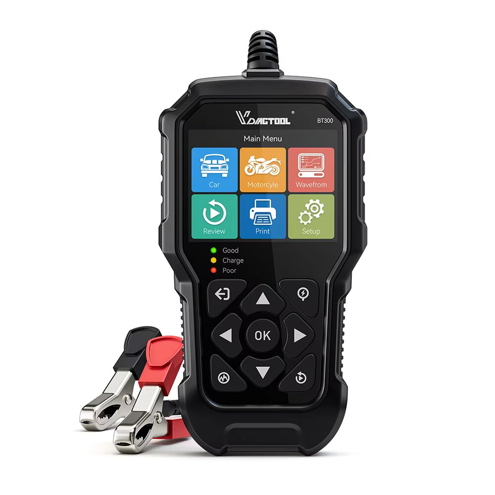 Description: VDIAGTOOL BT300 is a fast & accurate car battery tester that performs literally all tests necessary to check your vehicle's battery health conditions before it dies or a jump starter is needed,including 12V Battery Test likes Voltage ,Load ,Internal Resistance,Ripple Tests,Rating,SOC,SOH,CCA Test,Charging & Cranking Test. It's must-have battery testing tool for DIYers & pros.