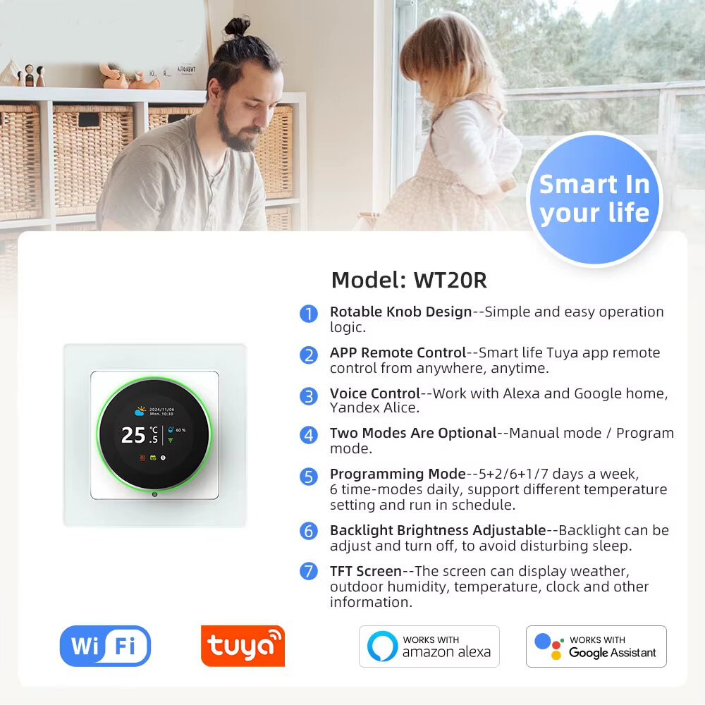 2. Remote Control via App: Compatible with Tuya and Smart Life apps for settings from anywhere using your smartphone.