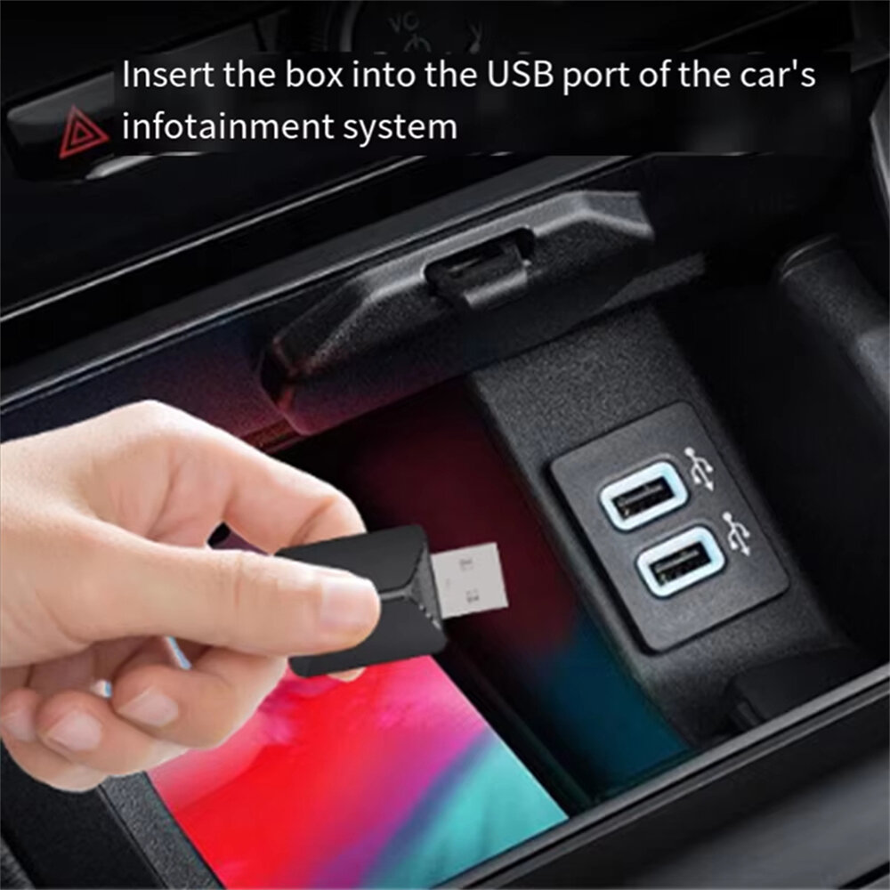 Features: 1. High-Speed Connectivity: Supports Bluetooth 5.2 and dual-band WiFi (2.4G & 5G) for seamless connection. 2. Automatic Pairing: Quickly connects with smartphones, enabling wireless CarPlay and Android Auto functionalities. 3. Compact Design: Lightweight and portable size (43mmx24.5mmx8mm), making installation convenient. 4. App Compatibility: Access navigation, music, and other popular apps like Spotify, Google Maps, and YouTube Music. 5. Uninterrupted Control: Retains original car dashboard features like touchscreen, steering wheel, and audio control.