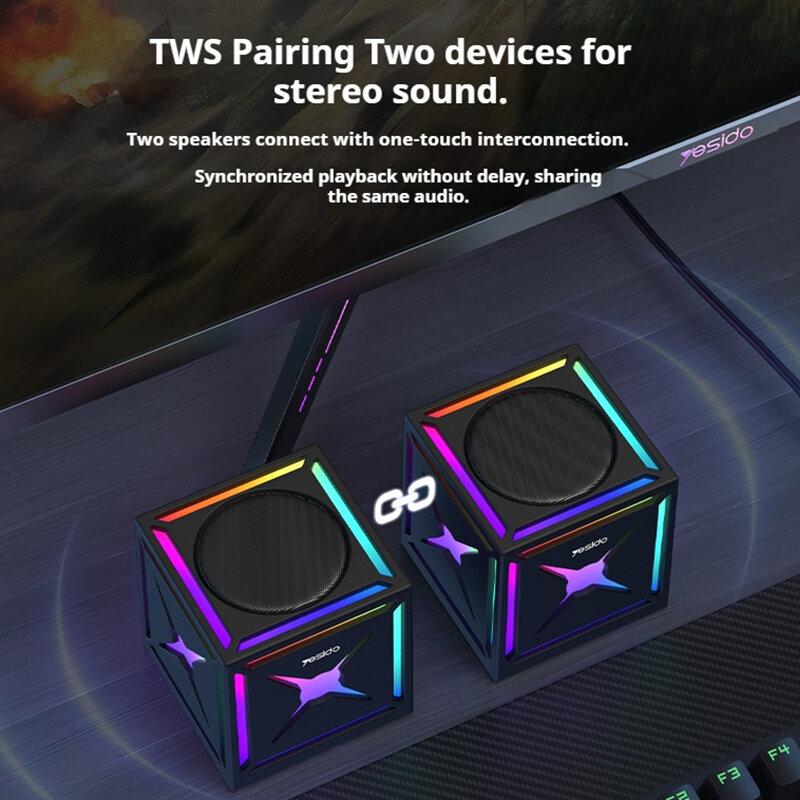 Immerse yourself in your favorite tunes with customizable RGB lighting effects that sync seamlessly with the rhythm of your music. Whether for gaming or gatherings, the lighting brings your space to life with unmatched vibrancy.